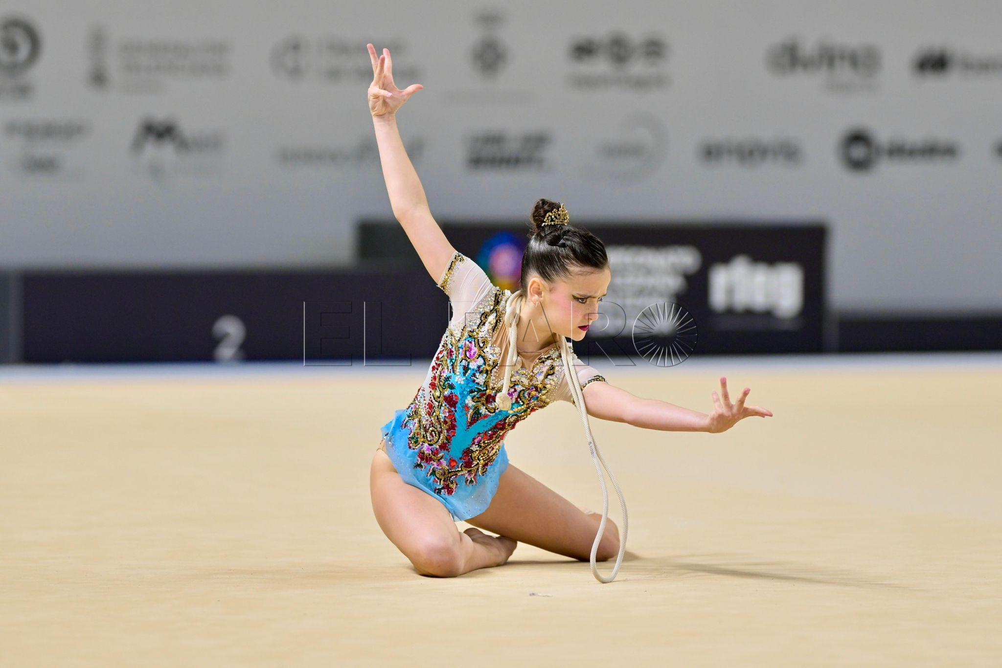 En el aparato de cuerda la gimnasta melillense Ana Tarilonte se posicionó en la 28 posición con un 17.700 y Chloe Potous en la posición 26 con un 17.750, seguidamente en el aparato de aro la gimnasta Marta Jerez se posicionaba en la posición 25 con un 19.450 y Ana Tarilonte en la 33 con un 17.250. Tras el descanso se inició la competición con el aparato de pelota donde Cloe Potous se posicionó en el puesto 29 con un 17.250 y Lucía Peña en el puesto 31 con un 16.950.