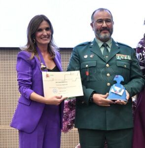 Uno de los momentos más emotivos del acto fue la entrega del premio Menina al agente Juan Antonio Martín Doña, miembro del Equipo Mujer-Menor (EMUME) de la Guardia Civil de Melilla. Su trabajo ha sido reconocido por su dedicación, disponibilidad permanente, respeto, empatía, honestidad y responsabilidad en la atención a víctimas. Su experiencia y compromiso han hecho de él un referente entre los cuerpos de seguridad, el ámbito judicial y los agentes sociales. Además, ha participado en la elaboración de planes de formación en el sistema VioGén.