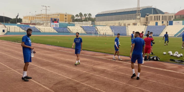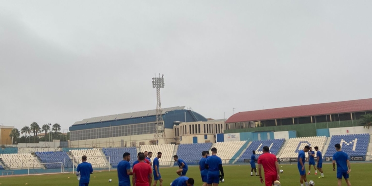 La plantilla de la Unión Deportiva Melilla se ejercitaba en la matinal de ayer miércoles en el Estadio Municipal Álvarez Claro y lo hacía con un cielo encapotado, una sensación térmica de 27 grados y un 100% de humedad, que era sofocante para los jugadores unionistas, si bien esto no sirvió para cambiar los planes de entrenamiento del cuadro técnico, que hizo que sudaran ‘la gota gorda’.