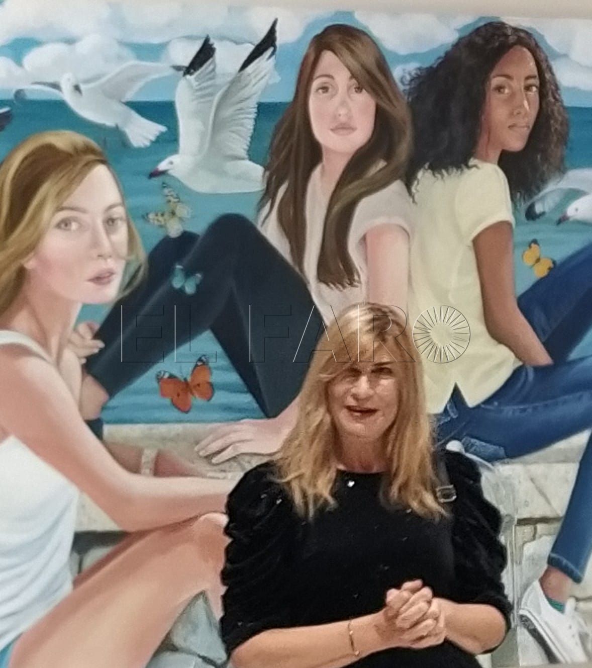 En las tres piezas que expone en Melilla late una idea persistente: el paisaje no es un fondo, es un estado de ánimo. Por eso sus cuadros no funcionan como postales, sino como lugares donde quedarse un rato. Ella lo explica desde lo emocional: todo lo que está “bañado por el mar” le da paz, pero no cualquier mar; busca el Mediterráneo, su mar, el que asocia a la tranquilidad y a un entorno al que vuelve una y otra vez, aunque sea desde la memoria o desde una geografía inventada. Esa sensación atraviesa la serie: rostros serenos, miradas introspectivas, espacios que parecen diseñados para bajar el ritmo.