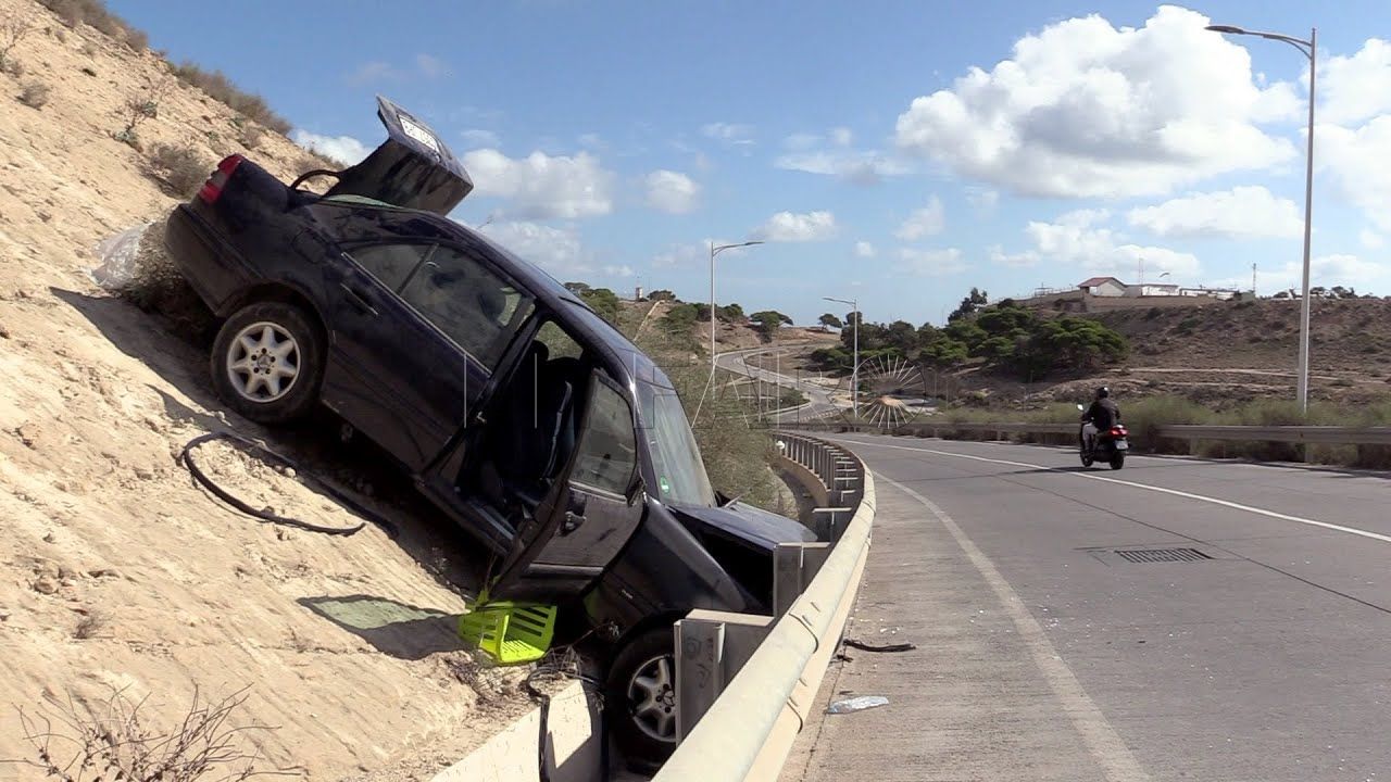Nuevo accidente de tráfico en Melilla. Un vehículo volcó esta madrugada en la rotonda del aeropuerto de Melilla y tuvo ...