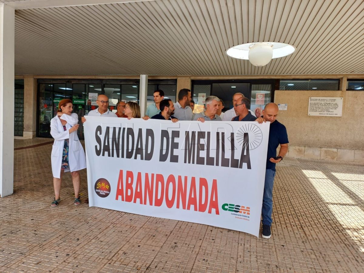 Los médicos en huelga de Melilla se han concentrado esta mañana frente a las puertas del Hospital Comarcal, a las ...