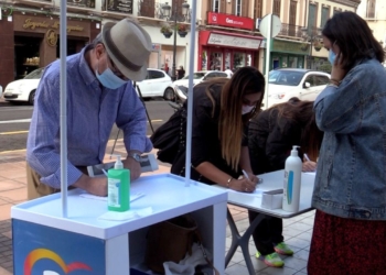 LA mesa de información sobre el Plan Antiokupación que el Partido Popular ha colocado en la Plaza Menéndez Pelayo ha ...