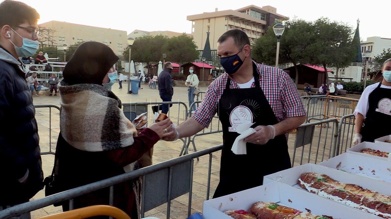 Decenas de melillenses se han acercado esta tarde a la plaza de las Culturas para tomarse una porción de Roscón ...