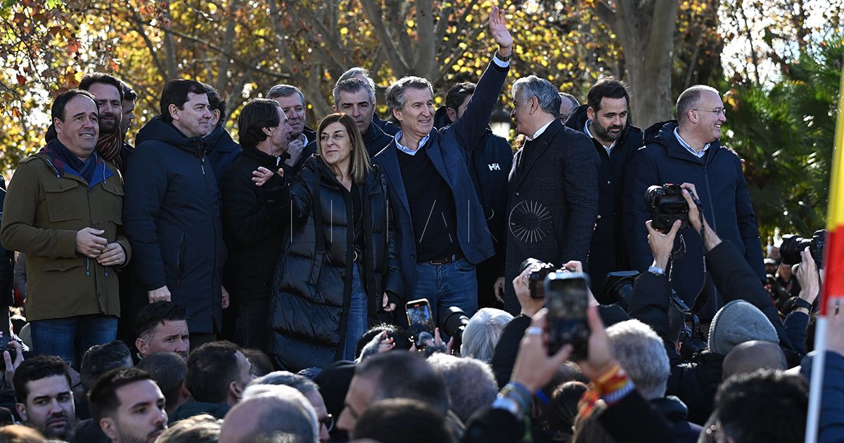 Feijóo ha aprovecha la manifestación, la séptima que ha convocado contra Sánchez en los dos años de legislatura, para enumerar las cinco medidas que abordaría en sus primeros cien días de gobierno, empezando por auditoría de la acción del Gobierno de Sánchez para conocer hasta donde ha llegado su "saqueo".