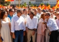 Feijóo, momentos antes, espera que la manifestación sea "muy clara y en positivo y en favor de nuestra democracia". En declaraciones a los medios, ha señalado que el objetivo de esta concentración es que los españoles "puedan hablar aquí, dado que el Gobierno no les deja hablar en las urnas".