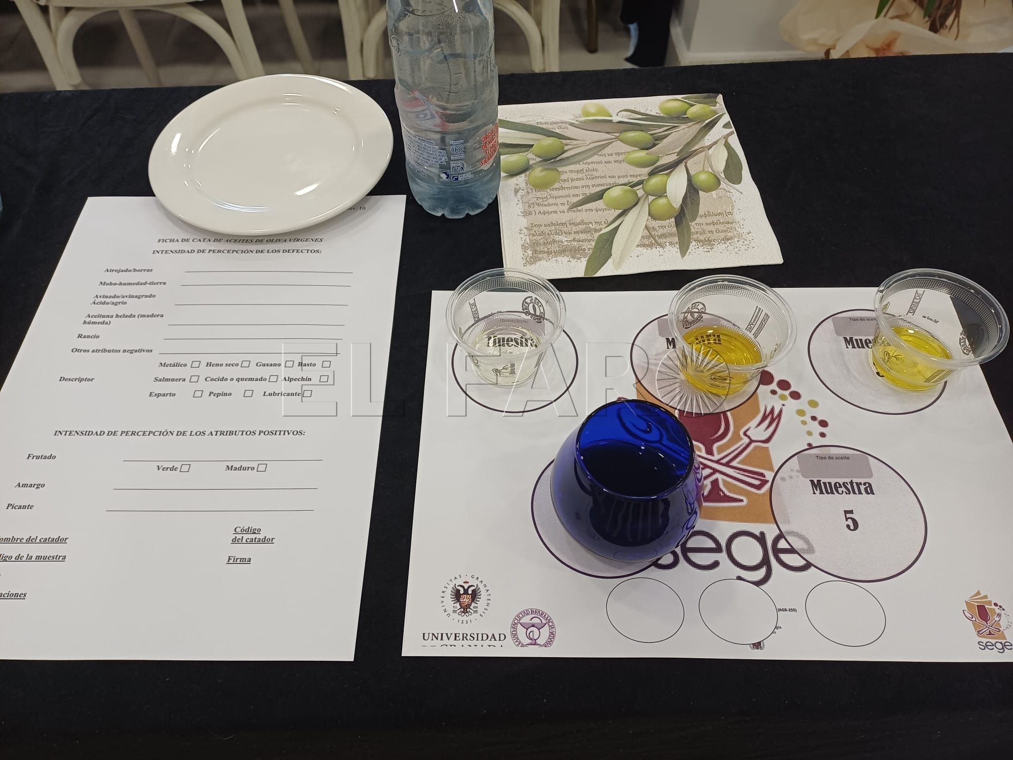 En primer lugar, los asistentes han catado esta tarde distintas variedades de aceite de oliva virgen extra de la provincia de Granada, analizando los atributos de este producto. El objetivo de esta cata ha sido, según dijo Martos, que los asistentes aprendieran a analizar la calidad de cualquier aceite.