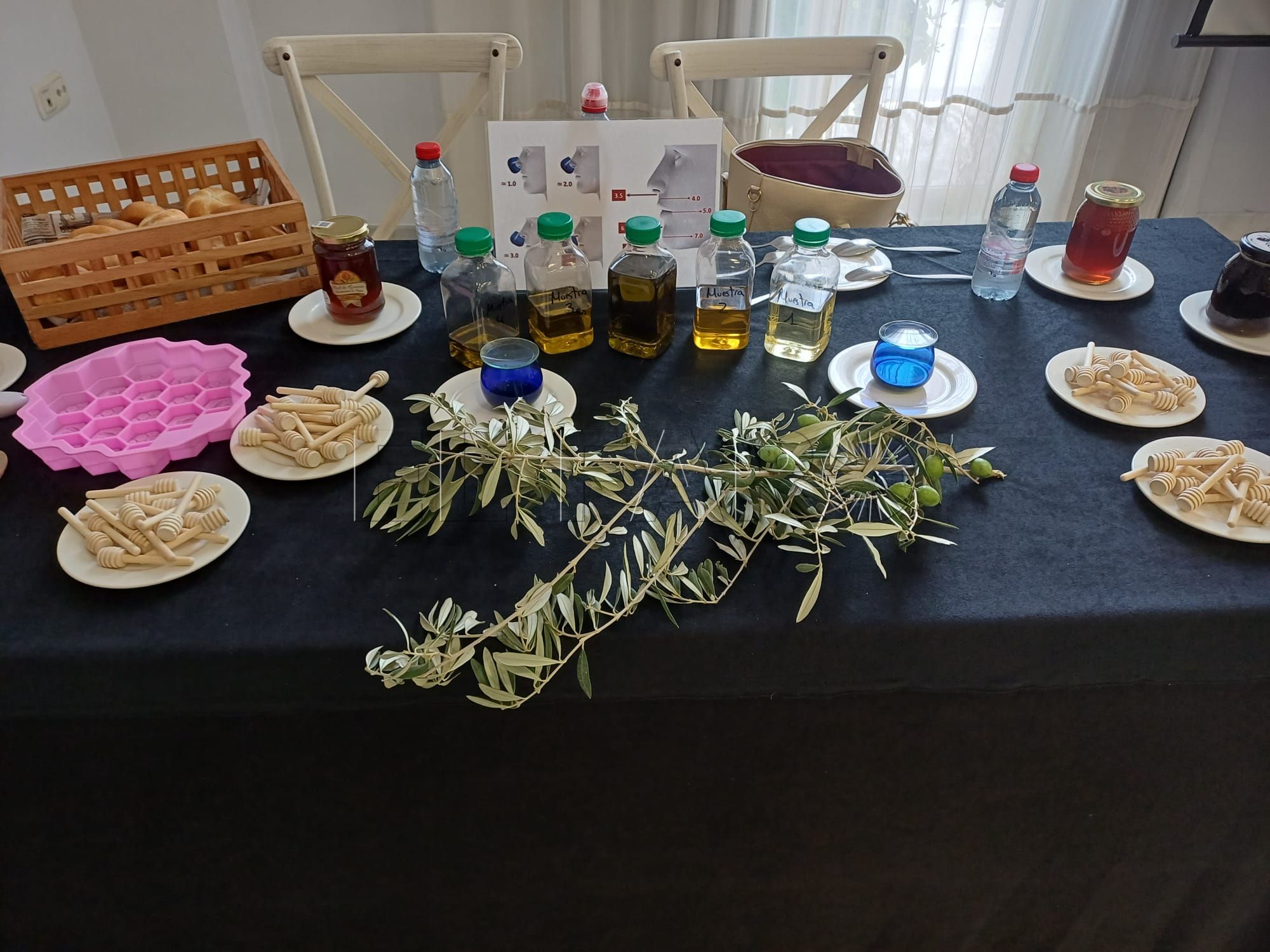 El curso de análisis sensorial ha contado con productos de proximidad, los cuales poseen una calidad notable. No en vano, este aceite de oliva virgen extra de variedad picual tiene un alto contenido en polifenoles. Por tanto, posee un elevado valor nutricional y antiinflamatorio.