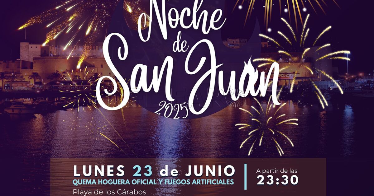 La Consejería de Cultura, Patrimonio Cultural y del Mayor de la Ciudad Autónoma de Melilla anuncia la esperada celebración de la noche de San Juan 2025, una de las festividades más emblemáticas y tradicionales del calendario melillense. La cita se producirá el próximo lunes, día 23 de junio, a partir de las 23:30 horas en la playa de los Cárabos, donde la ciudadanía podrá disfrutar de la quema de la hoguera oficial y un espectacular despliegue de fuegos artificiales que iluminarán el cielo sobre el mar.