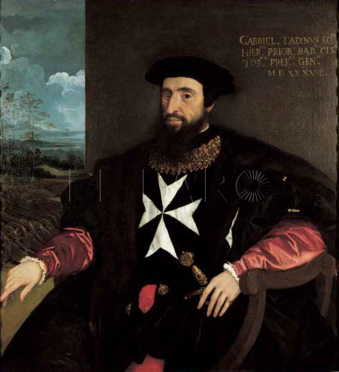 -Gabriele Tadino nació en Martinengo, en la región de Brescia, alrededor de 1480 y muerió en Venecia en 1543. Después de completar sus estudios en el campo de la medicina y la arquitectura militar, se unió al ejército de la República de Venecia siendo aún joven durante la guerra contra la Liga de Cambrai. En 1522 había dirigido con éxito la defensa de la isla de Rodas contra la flota turca de Solimán el Magnífico. En esta ocasión, mientras examinaba las fortificaciones de las que era superintendente, resultó gravemente herido por un disparo de arma de fuego que atravesó una rendija y le hizo perder el ojo derecho. Gracias a sus méritos militares, fue aceptado en la orden de los Caballeros de Jerusalén y también recompensado con el priorato de Barletta.