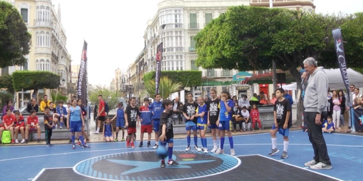 La Plaza de España de Melilla se ha convertido este sábado en el escenario de la segunda parada del circuito Plaza 3x3 CaixaBank 2019. Más de 400 chavales se han animado a participar en el torneo en el que el ex jugador de baloncesto Fernando Romay ha ejercido de maestro de ceremonias.