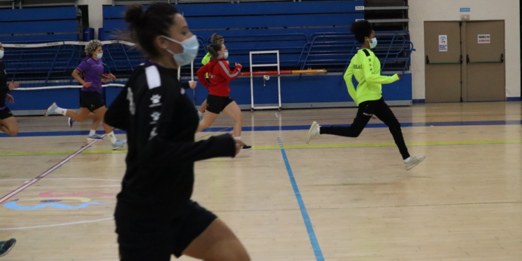 Las Guerreras entrenan estos días con la mascarilla quirúrgica puesta y es que, este viernes tendrán que competir en San Fernando con la mascarilla impuesta por el encargado de Salud del municipio madrileño.