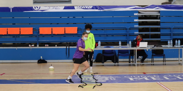 Marcos Gómez preparó el trabajo según las jugadoras que se marcharon de viaje y las que se quedaron en Melilla. Las que se quedaron aquí, pudieron “trabajar mantenimiento en el centro 180 grados” bajo su supervisión. Para el resto, les mandó una serie de ejercicios de “mantenimiento y fuerza a alta intensidad”, destaca Gómez, que daba la posibilidad de complementarlo con carrera continua o bicicleta.