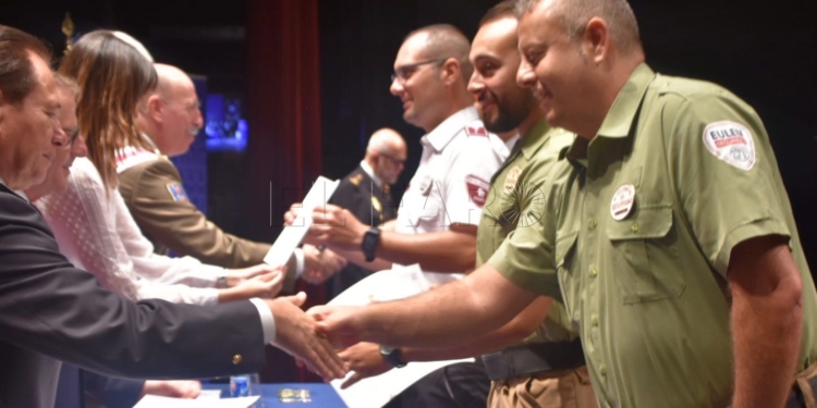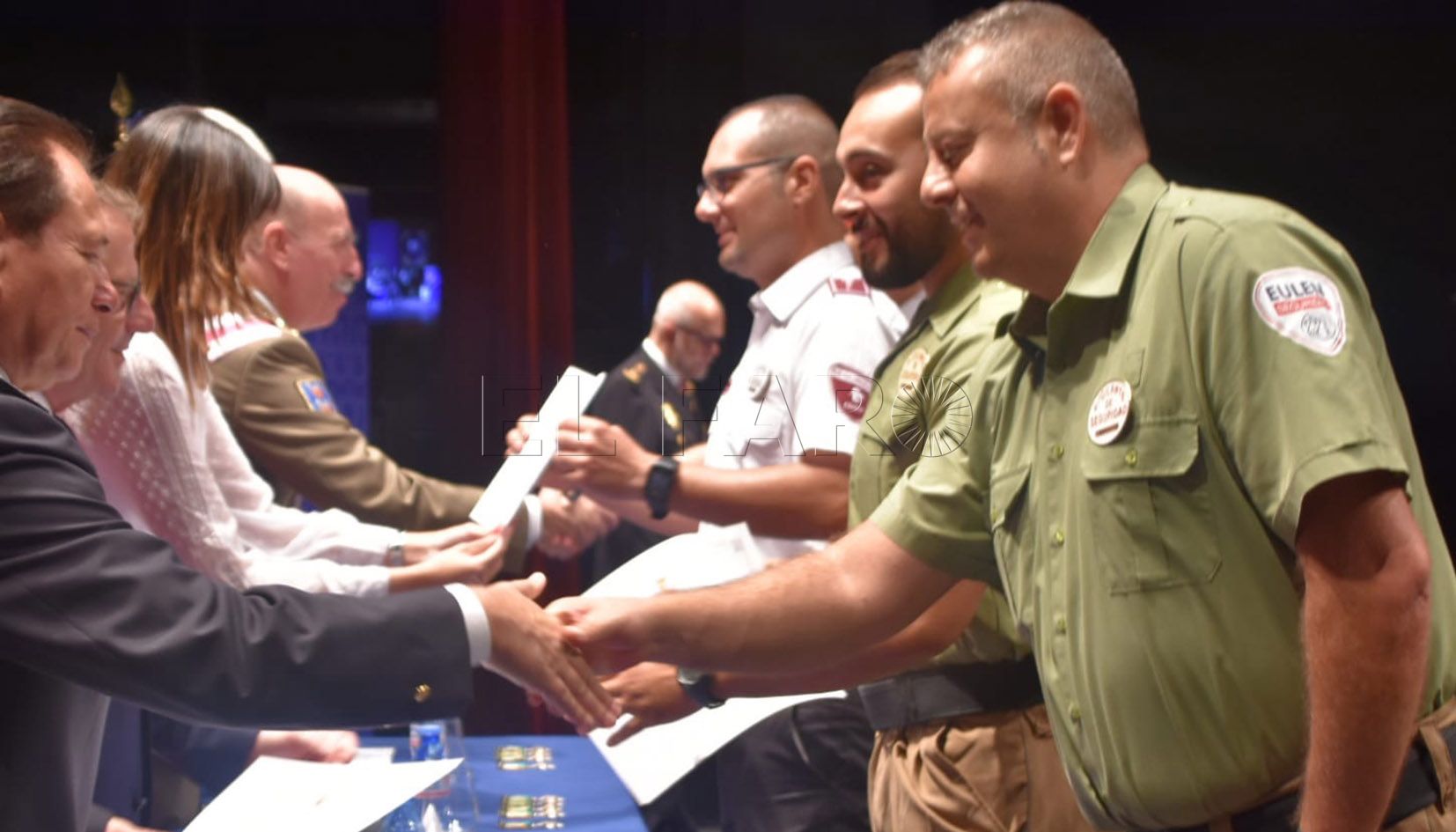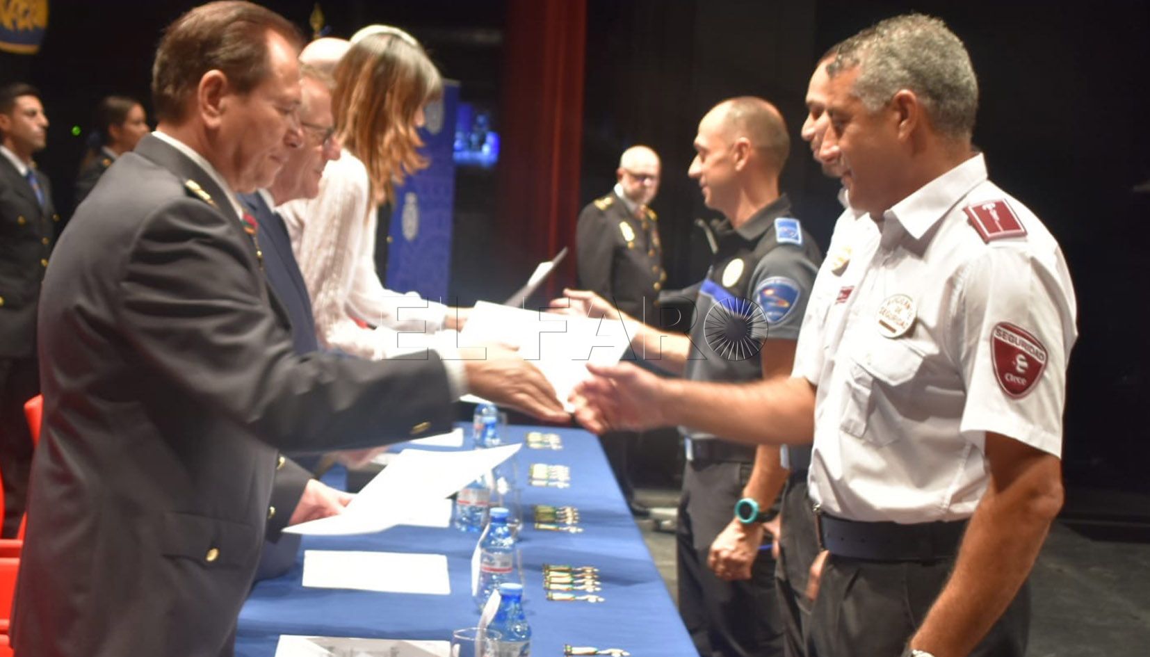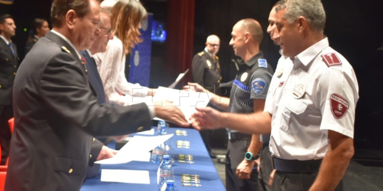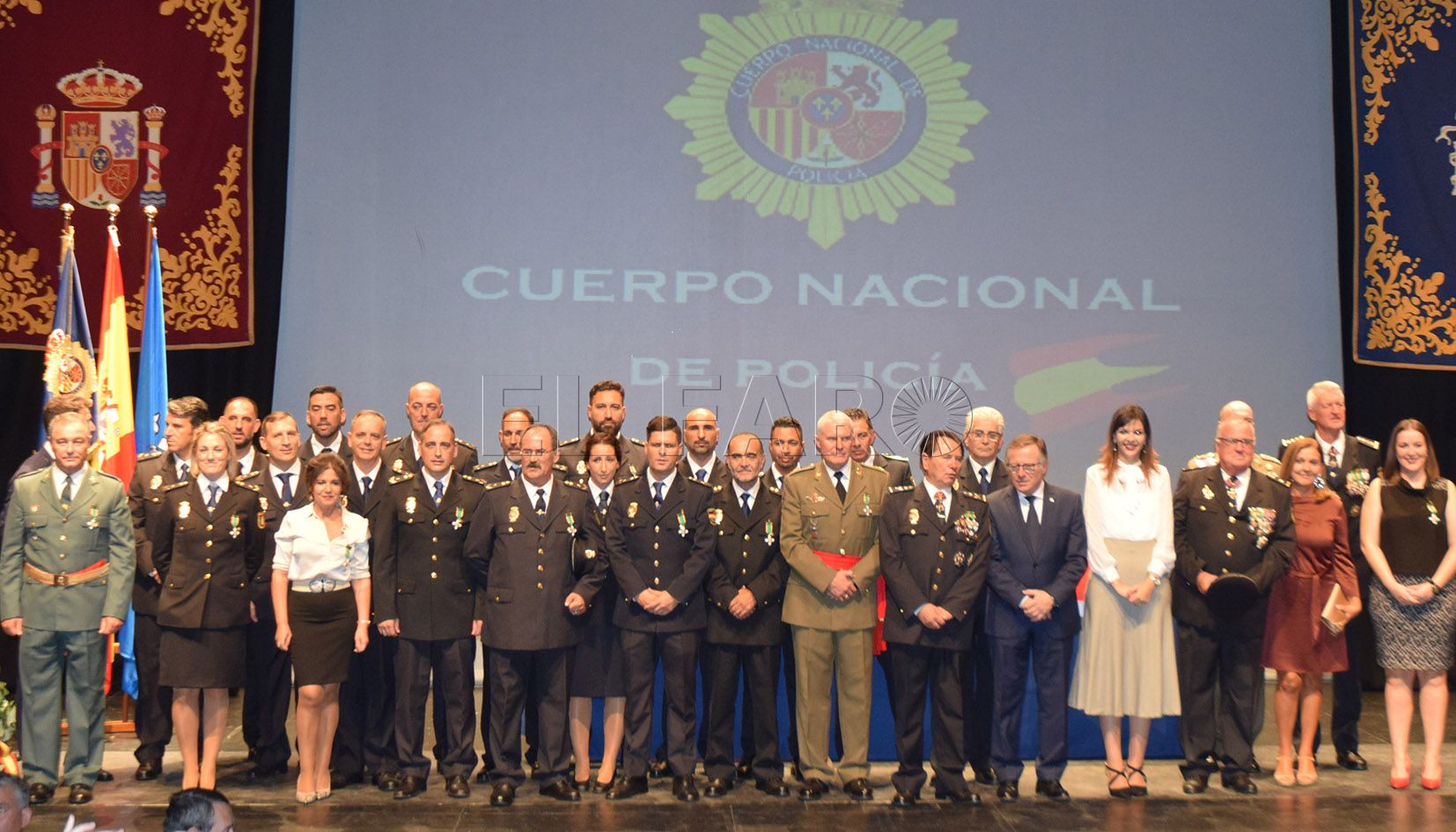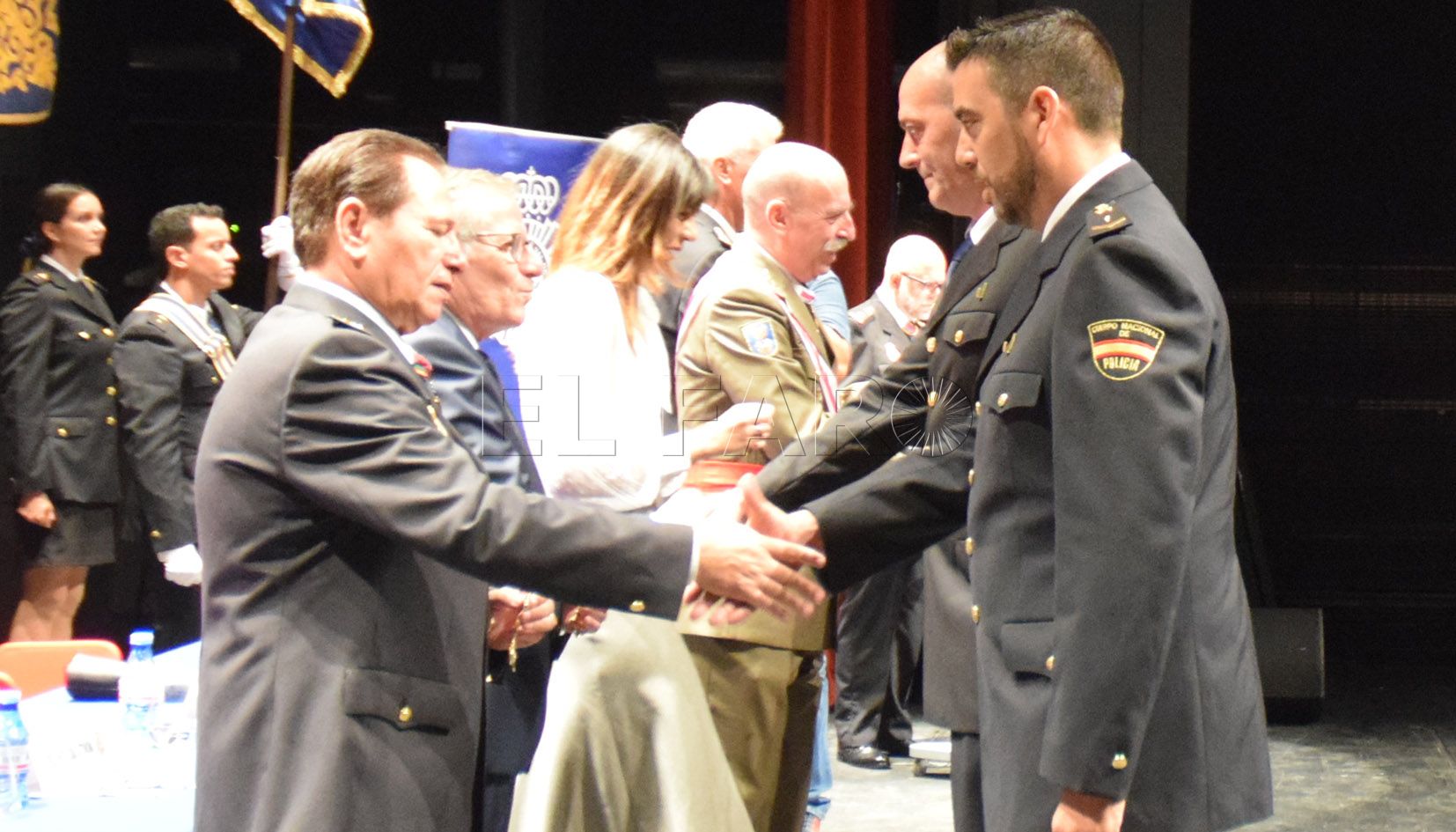 La Policía Nacional ha hecho entrega de un gran número de galardones y medallas a agentes, vigilantes de seguridad y miembros de la sociedad civil y militar por el buen trabajo realizado y también por la colaboración que han ofrecido muchos de ellos a este cuerpo. Se ha llevado a cabo en el acto celebrado en el teatro Kursaal por el día de su patrón Ángeles Custodios.