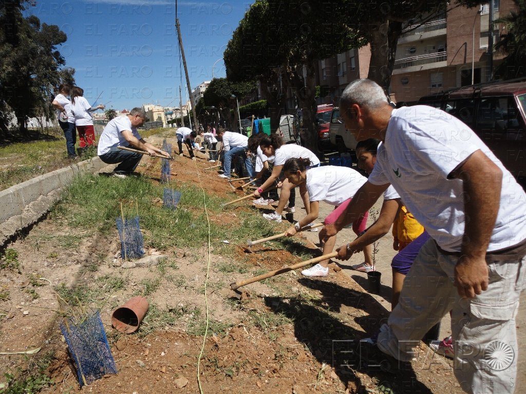 Una plantación de árboles en un solar situado bajo la calle de los Altos de la Vía fue el acto con el que los miembros de Guelaya-Ecologistas en Acción ha celebrado el Día Mundial de la Tierra. También participó en esta actividad la escuela de padres del IES Juan Fernández.
