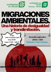 Este jueves, día 20 de noviembre, Guelaya-Ecologistas en Acción organiza las Jornadas sobre Migraciones Ambientales, un encuentro que tendrá lugar en el centro asociado de la Universidad Nacional de Educación a Distancia (UNED) en Melilla y que estará destinado a comprender cómo el cambio climático, la degradación ambiental y los desastres ecológicos están transformando las dinámicas de movilidad humana en todo el mundo.