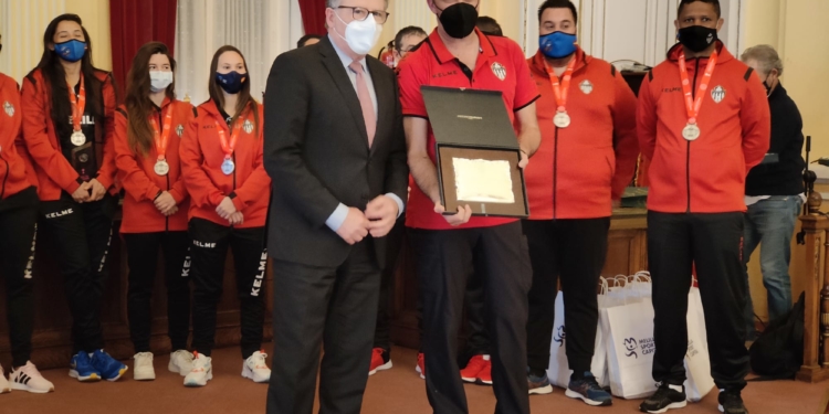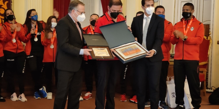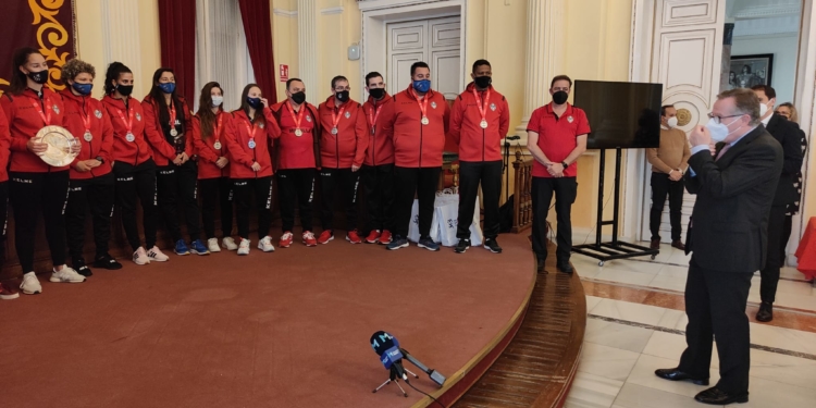 Todas los componentes del Melilla Sport capital fueron recibidas por las autoridades locales en el Salón Dorado de la Asamblea de la Ciudad, con Eduardo de Castro a la cabeza