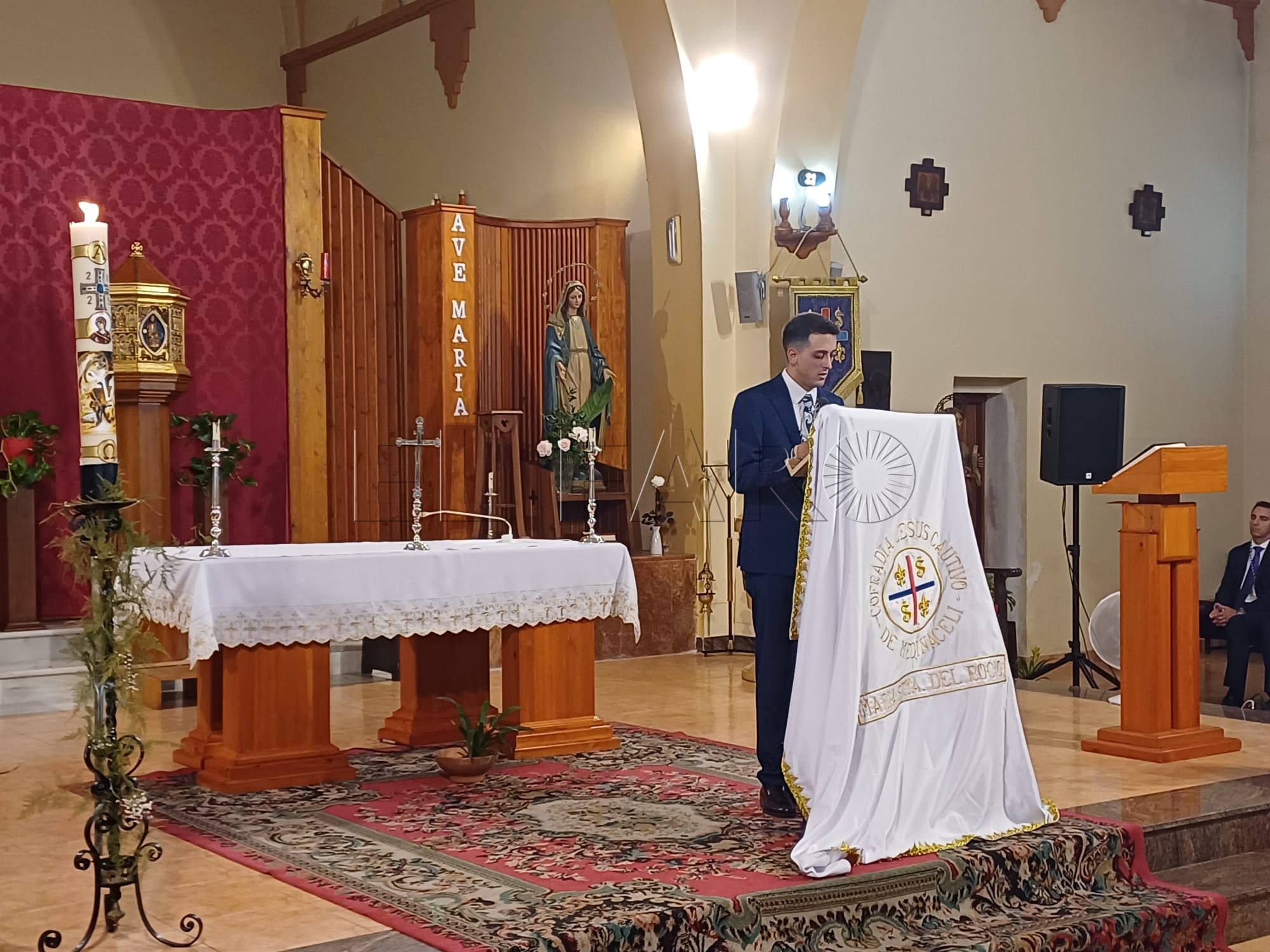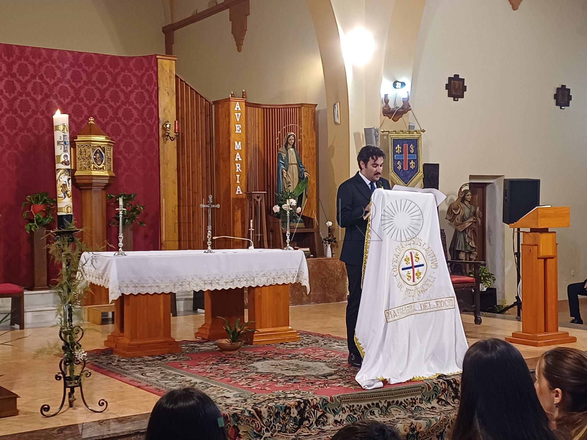 La Parroquia de Santa María Micaela ha acogido este mediodía un emotivo pregón con motivo de la Romería del Rocío a cargo del joven vocal de albacería de la Cofradía de Nuestro Padre Jesús Cautivo de Medinaceli y María Santísima del Rocío, Hugo Cerdera.