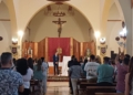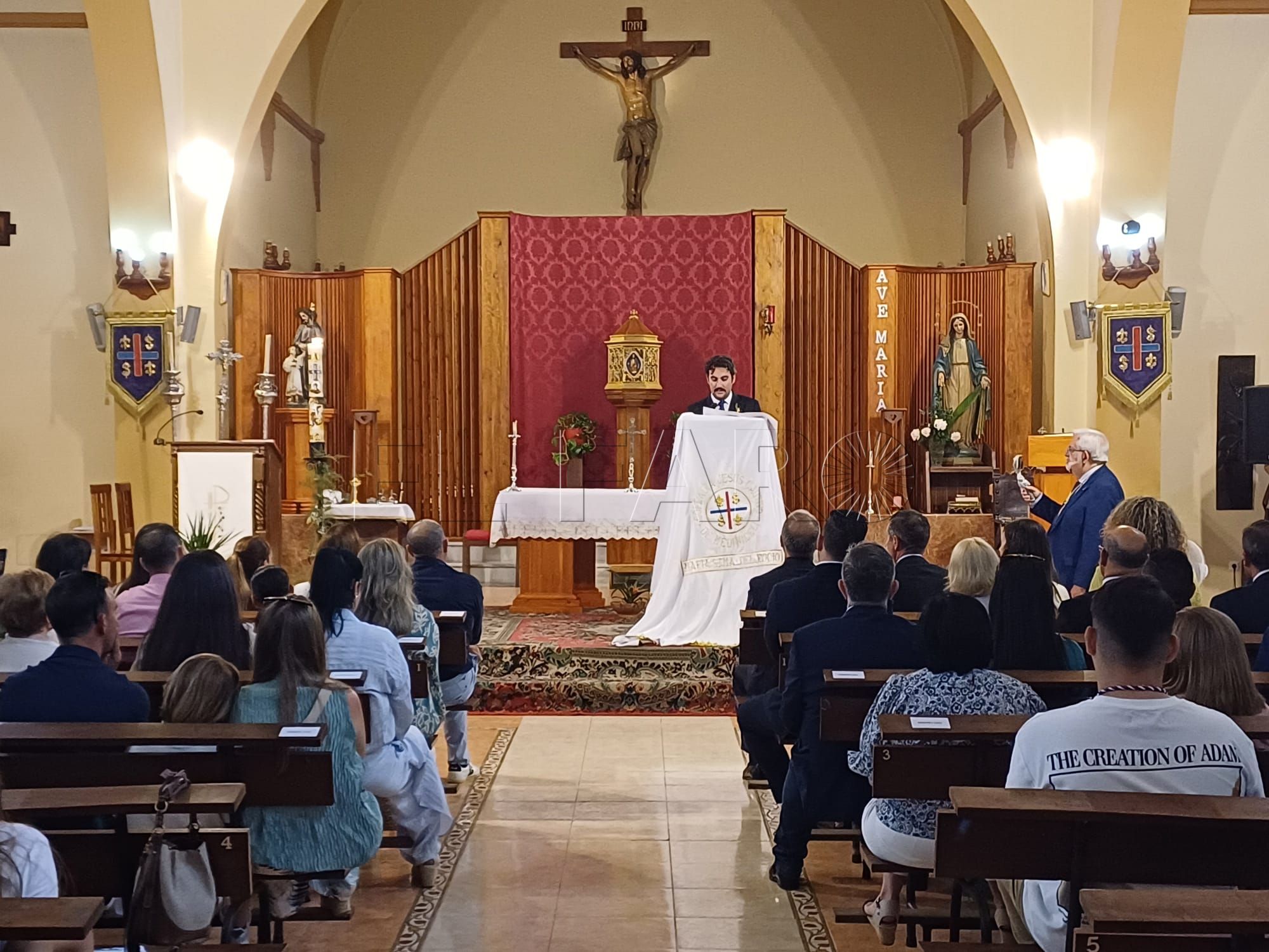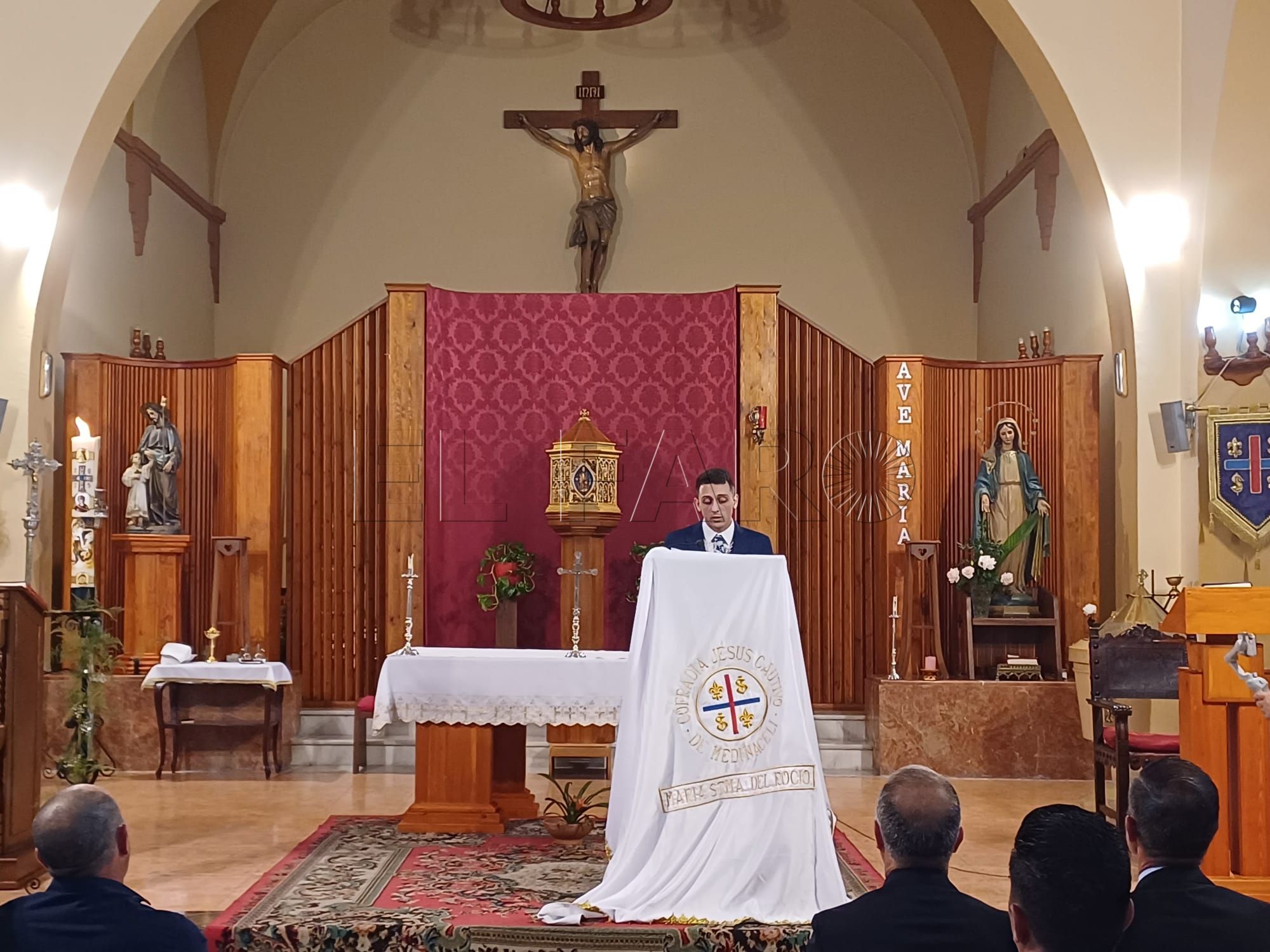 Este acto ha contado con la presencia de docenas de fieles, muchos de los cuales eran familiares y amigos del joven pregonero. No obstante, también había presencia institucional en Santa María Micaela, con la asistencia de representantes del Gobierno de la Ciudad Autónoma, encabezados por el vicepresidente Primero, Miguel Marín, el comandante general de Melilla, Luis Cortés y representantes de las distintas cofradías de nuestra ciudad.