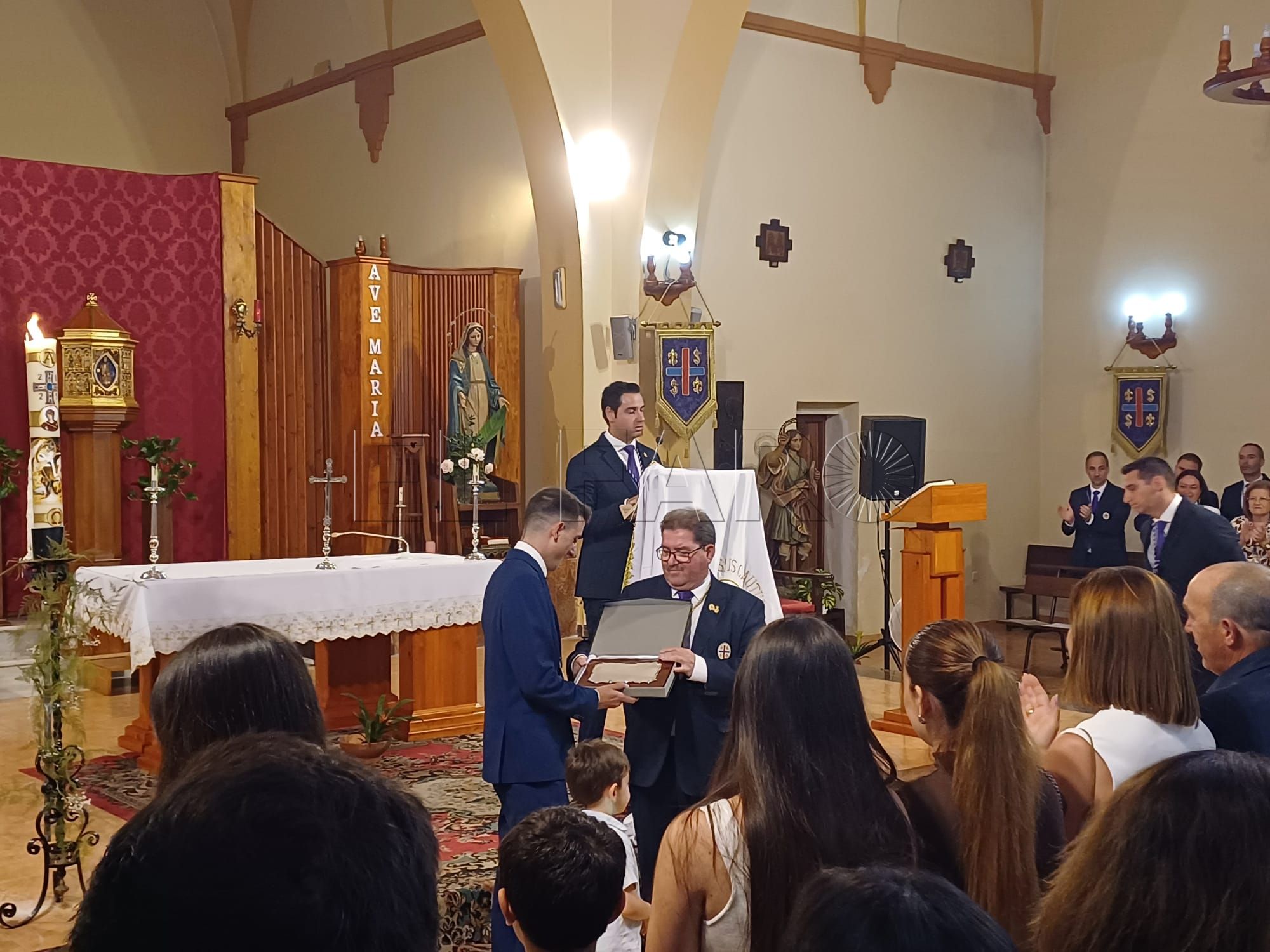El hermano mayor de la Cofradía, Gregorio Castillo, procedió a entregar un reconocimiento tanto al presentador como al pregonero.