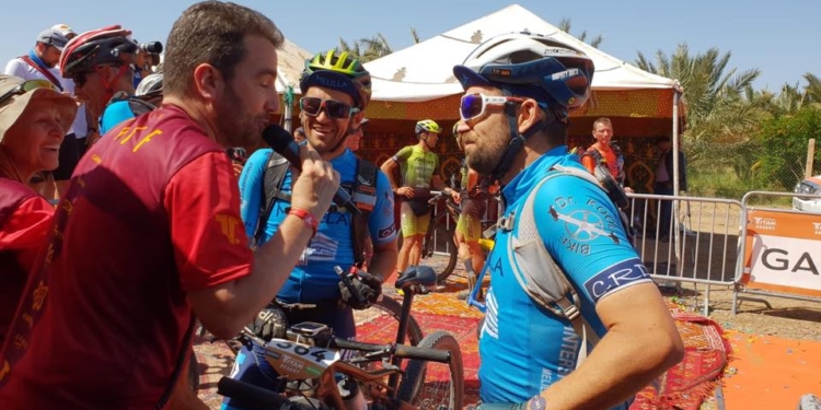 El equipo melillense formado por Javier Iglesias y Nacho Herrera se alzaron, en la jornada de ayer, con el título de campeones en una de las pruebas más duras del mundo de ciclismo de montaña, la Titan Desert 2019, dentro de la categoría Ambassador. La última etapa se disputó en la jornada de ayer entre las localidades El Jorf y Maadid, de 64 kilómetros y donde los deportistas de nuestra ciudad obtuvieron un nuevo triunfo dominando esta categoría desde el primero de los días de la competición que durante toda esta semana se ha estado celebrado en tierras marroquíes. La Titan terminó con sol y calor, notas predominantes en el desierto marroquí, pero entre las experiencias inolvidables del pelotón quedará para siempre las tormentas de arena, especialmente la del pasado jueves, cuando el viento cargado de tierra perjudicó seriamente la salud del campamento. Los melillenses cumplieron esta última jornada con un tiempo de dos horas, 58 minutos y dos segundos, lo que hizo que incluso incrementaran su ventaja dentro de la clasificación general de este competición de alto nivel.