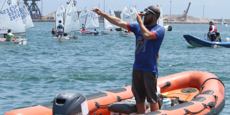 La flota ha estado hasta las dos de la tarde en el campo de regata expectantes a que el viento rolón marcase una clara dirección. Tras un buen rato con la bandera de aplazamiento izada en el barco comité se ha podido iniciar la jornada. Tras una primera salida fallida para la flota Optimist, con llamada general, el resto de pruebas siguieron su curso.