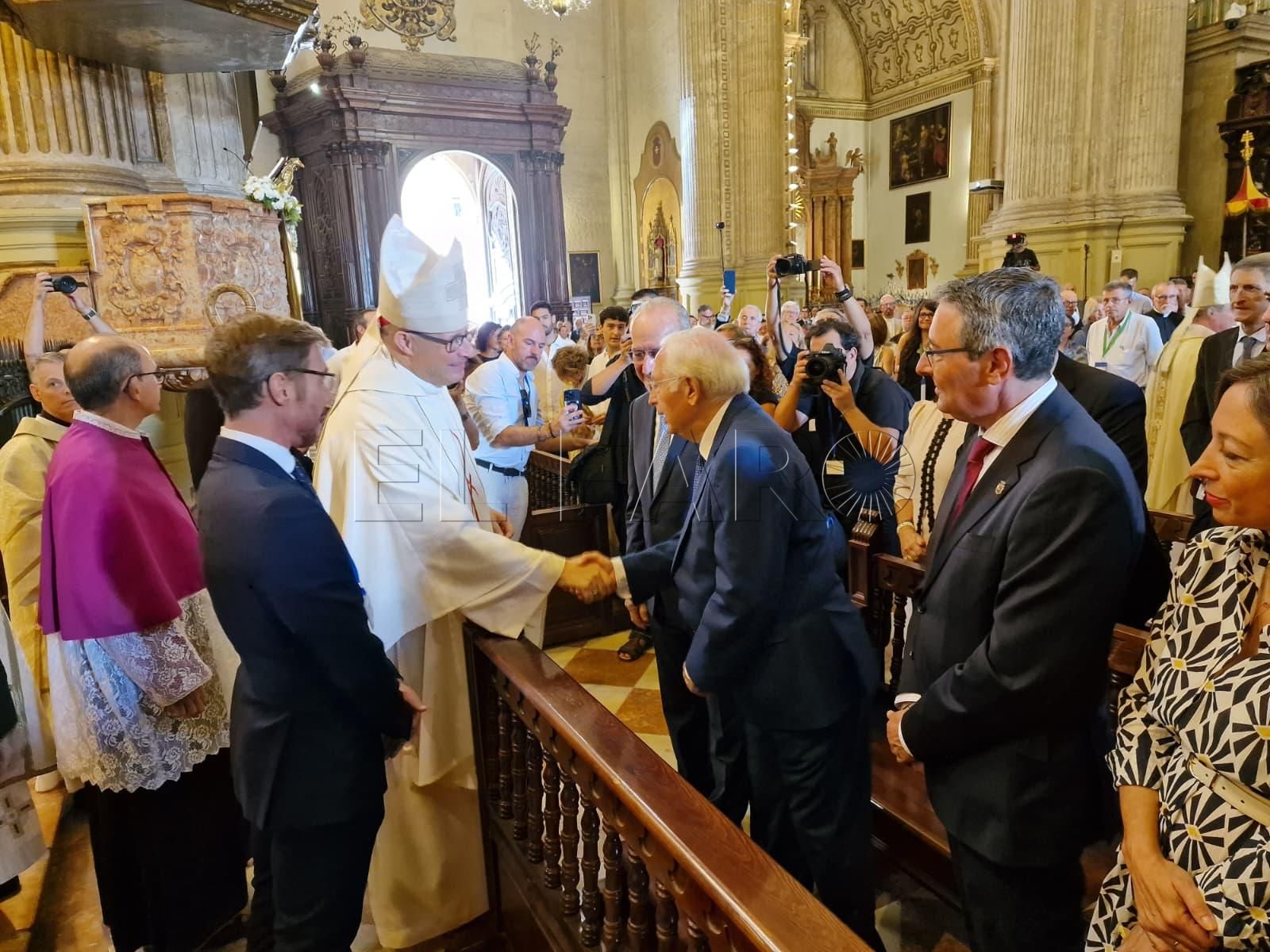 Imbroda ha ocupado un lugar destacado en el templo, acompañado por dos de las principales autoridades de la provincia vecina: el alcalde de Málaga, Francisco de la Torre, y el presidente de la Diputación, Francisco Salado. El acto ha congregado a un nutrido número de representantes de la sociedad civil, política y eclesiástica de Málaga, que han querido arropar al nuevo prelado en el inicio de su ministerio pastoral.