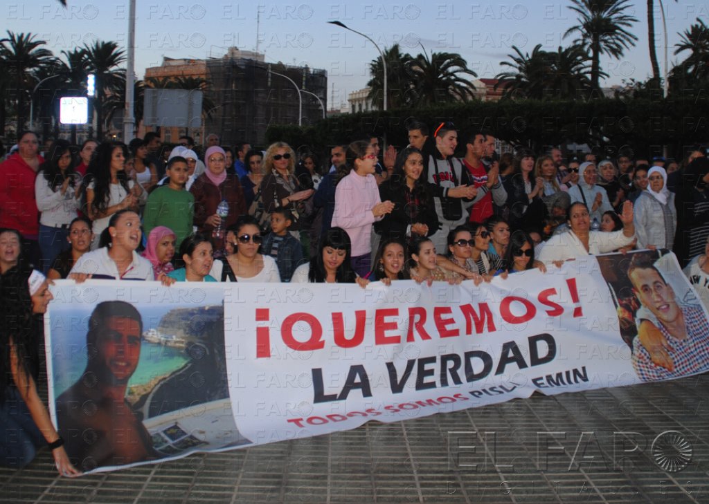 Hay que recordar que unas trescientas personas, encabezadas por una parcarta con las fotografías de los dos jóvenes que murieron el pasado 27 de octubre a consecuencia de los tiros de la Marina Real marroquí que portaban sus familiares y amigos, se manifestaron el domingo en la puerta de la Delegación del Gobierno, tras recorrer la Avenida Juan Carlos I. Fue la segunda concentración que se produce en los últimos diez días. Ya en la primera las personas congregadas gritaron contra el delegado del Gobierno y le pidieron una respuesta. A pesar de que El Barkani recibió la semana pasada a los familiares de los dos jóvenes y de que los padres de Pisly y Emin aseguraron tras la reunión que el delegado les había mostrado su apoyo, el domingo los manifestantes volvieron a pedir más implicación al máximo representante del Gobierno central.