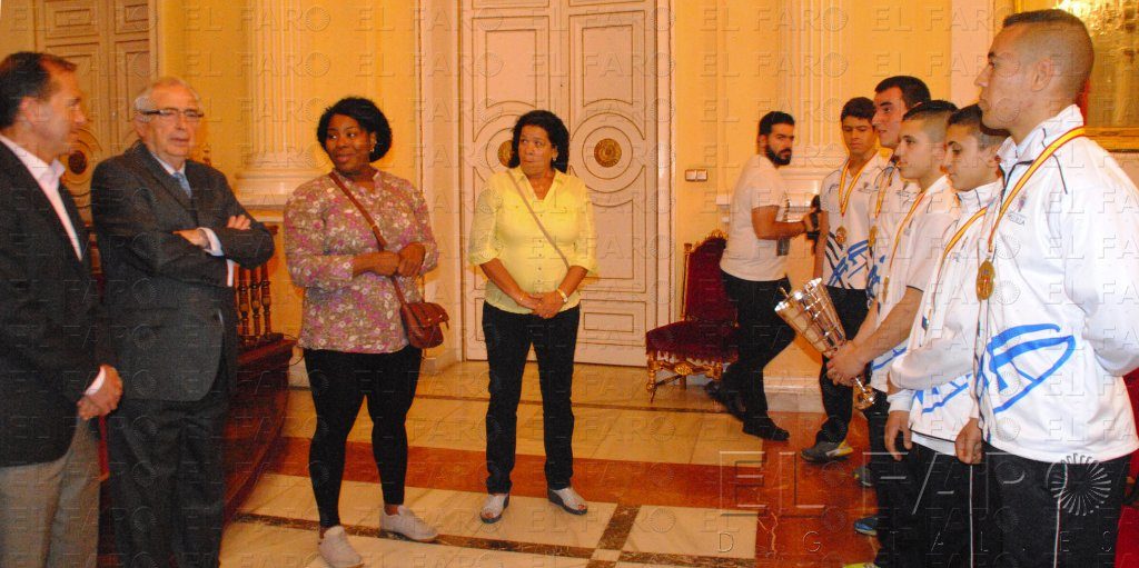 Junto al presidente de la Ciudad, también estuvo en esta recepción el consejero de Deportes, Miguel Marín. Acompañando a los componentes del equipo estaban su entrenadora, Carmenza Delgado, y la presidenta de la Federación Española de Halterofilia, Idalia Valdés.