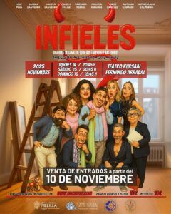La Agrupación Teatral Enrique Soler vuelve a subirse a las tablas este fin de semana con Infieles, una comedia de enredos, ritmo vertiginoso y muchas risas. La cita será los días 14, 15 y 16 de noviembre en el Teatro Kursaal Fernando Arrabal, donde el grupo melillense promete al público una experiencia de humor y cercanía, marca de la casa.