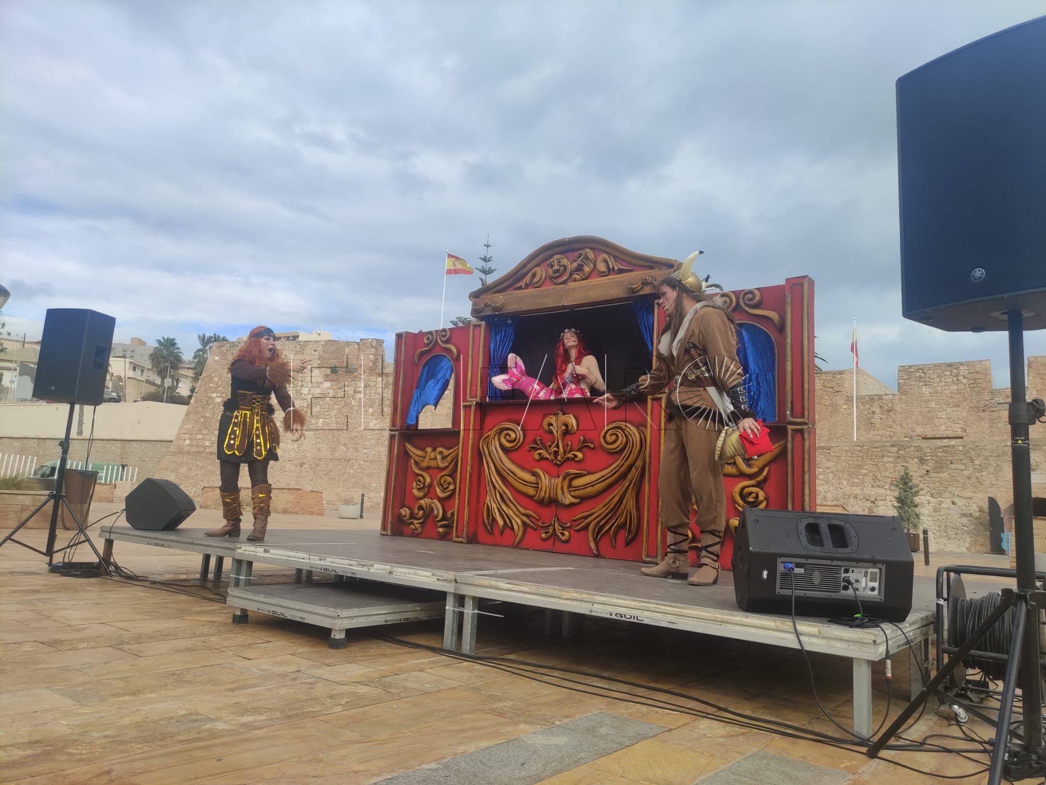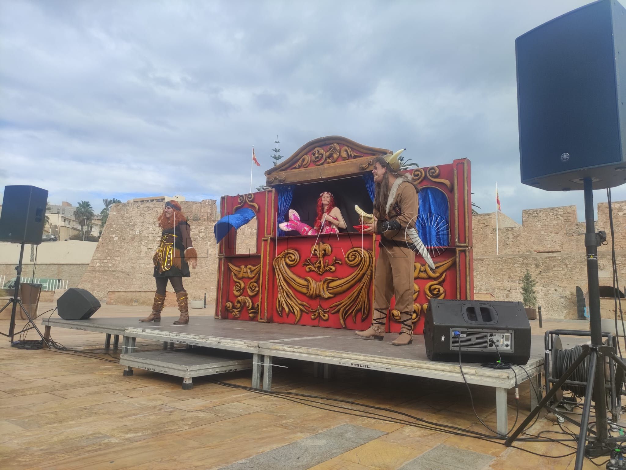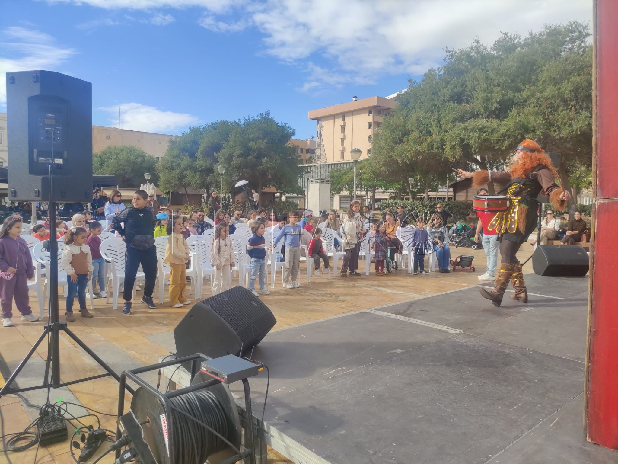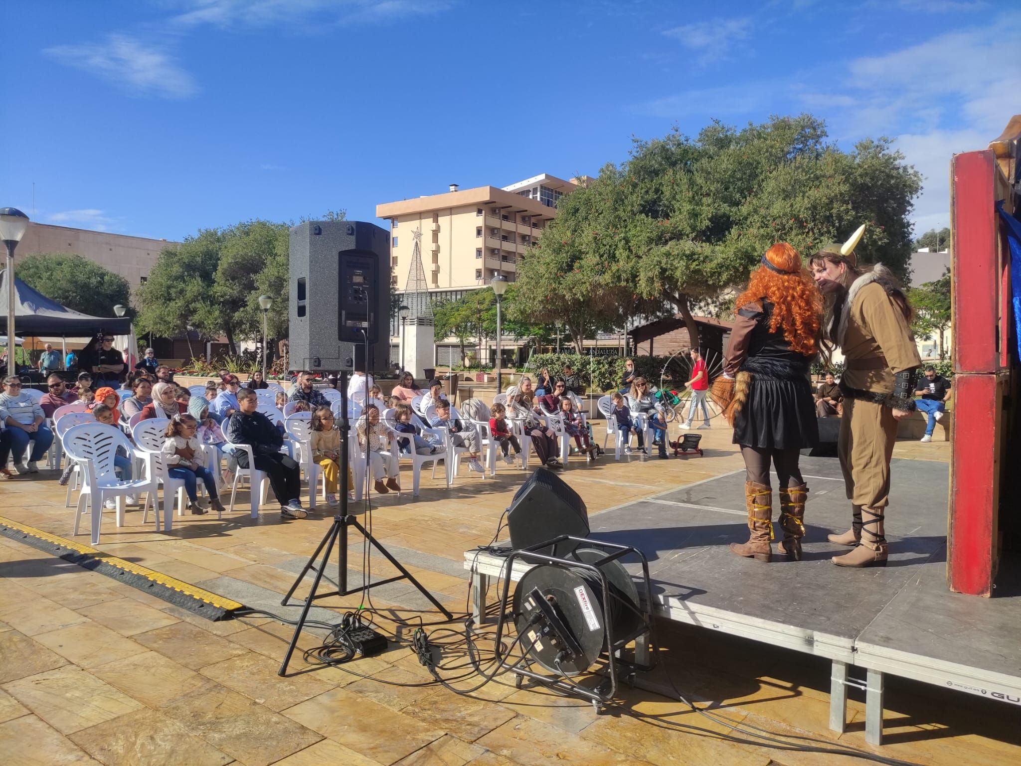 A las doce del mediodía, y poco a poco, el público comenzó a acercarse, llenando las sillas dispuestas frente al escenario, donde tres personajes darían vida a una historia tan divertida como necesaria: Inga, una niña soñadora y valiente, interpretada por María Márquez; VikKo, un vikingo testarudo, encarnado por Ceci Urbano; y la sirena Urugú, un ser mitológico lleno de magia, al que dio vida Aitana Henriksen.