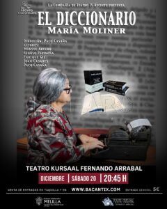 Un día más tarde, el sábado, también a las 20:45 horas, se representará la vida de María Moliner, la lexicógrafa que impulsó el primer plan de bibliotecas del Estado y dedicó toda su vida a la confección de uno de los diccionarios más completos jamás realizados. Una historia difícil y apasionante, magníficamente interpretada por los actores de la compañía.