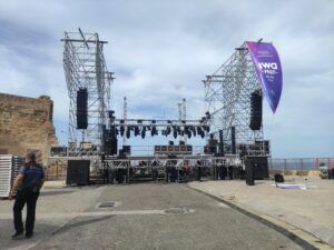 Todavía queda trabajo. Los técnicos y los camareros continúan preparando y dando color a un espacio donde los focos, ya elevados, se encenderán; las pruebas de sonido y la conexión de la microfonía se culminarán; y la imagen visual del festival quedará sostenida en lonas de seis metros alzadas para identificar el evento. Un año más, las pulseras recargables con la compra de la entrada adornarán las muñecas de los melillenses que acudan a disfrutar de esta variedad musical donde las culturas son el foco y el arte el sentido que las acompaña.