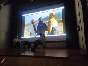Este espacio de reflexión llevado a cabo en el Salón de Actos de la UNED Melilla se dirigió a un público joven, estudiantes de FP de audiovisuales y otras ramas artísticas. Entre sus mensajes, los tres profesionales les dedicaron palabras en base a su experiencia, dado el punto formativo en el que se encuentran. Se dirigieron a ellos con palabras a través de los cuales reseñaban que a veces no se tienen las cosas claras, así como que vivir del arte en España es difícil, pero que hay maneras de poder dedicar tiempo a la actividad creativa mientras uno se emplea en un trabajo honrado que le ayude a sostener su inquietud. Invitaron a que los estudiantes persigan sus inspiraciones, salgan fuera, aprendan, conozcan y se abran al mundo, sin miedo a equivocarse, a las barreras lingüísticas ni a las líneas físicas que separan territorios. “Caeros y levantaros, y luego volved con lo aprendido”, animaba Daniel con su mensaje.