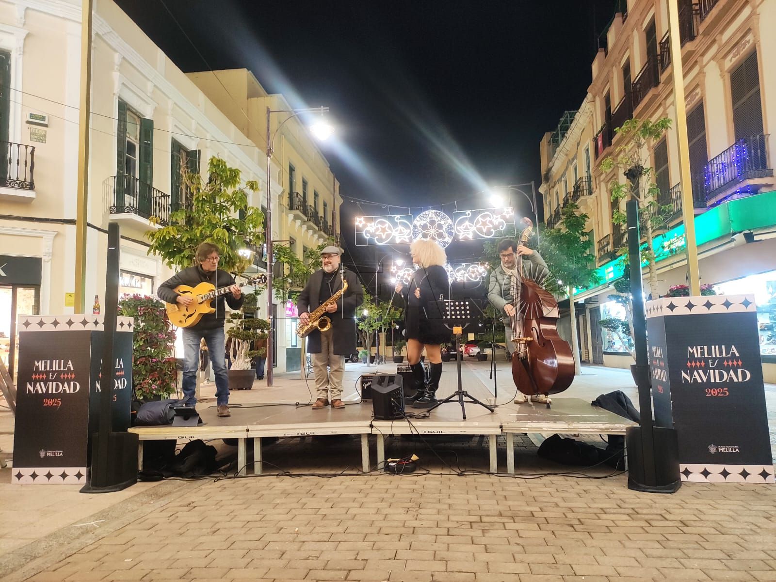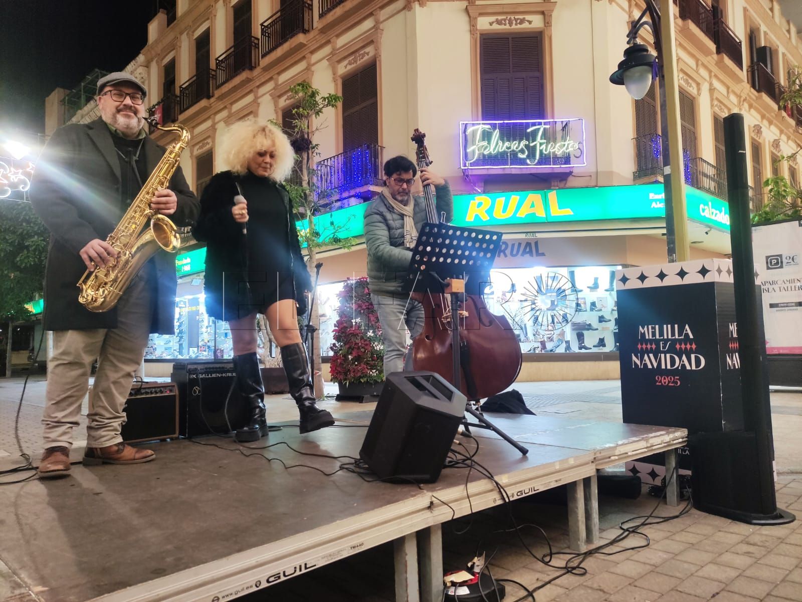 Estas navidades, el grupo Jazz Trío regresa a los escenarios melillenses con una propuesta que ya es tradición para quienes aman el directo, la improvisación y la cercanía musical. Formado por Chamo al saxo, Higinio Reus a la guitarra y Kiriko al contrabajo, junto a la voz de Naíma Mohatar, el grupo ofrece varios días de conciertos —28, 29 y 30 de diciembre— en la calle O’Donnell, con dos pases cada tarde, a las 18:30 y a las 20:00 horas. Será una oportunidad para volver a ver en acción a tres músicos que, pese a vivir en la actualidad en diferentes lugares, encuentran siempre el momento para reencontrarse, subirse juntos al escenario y compartir su forma única de entender el jazz.