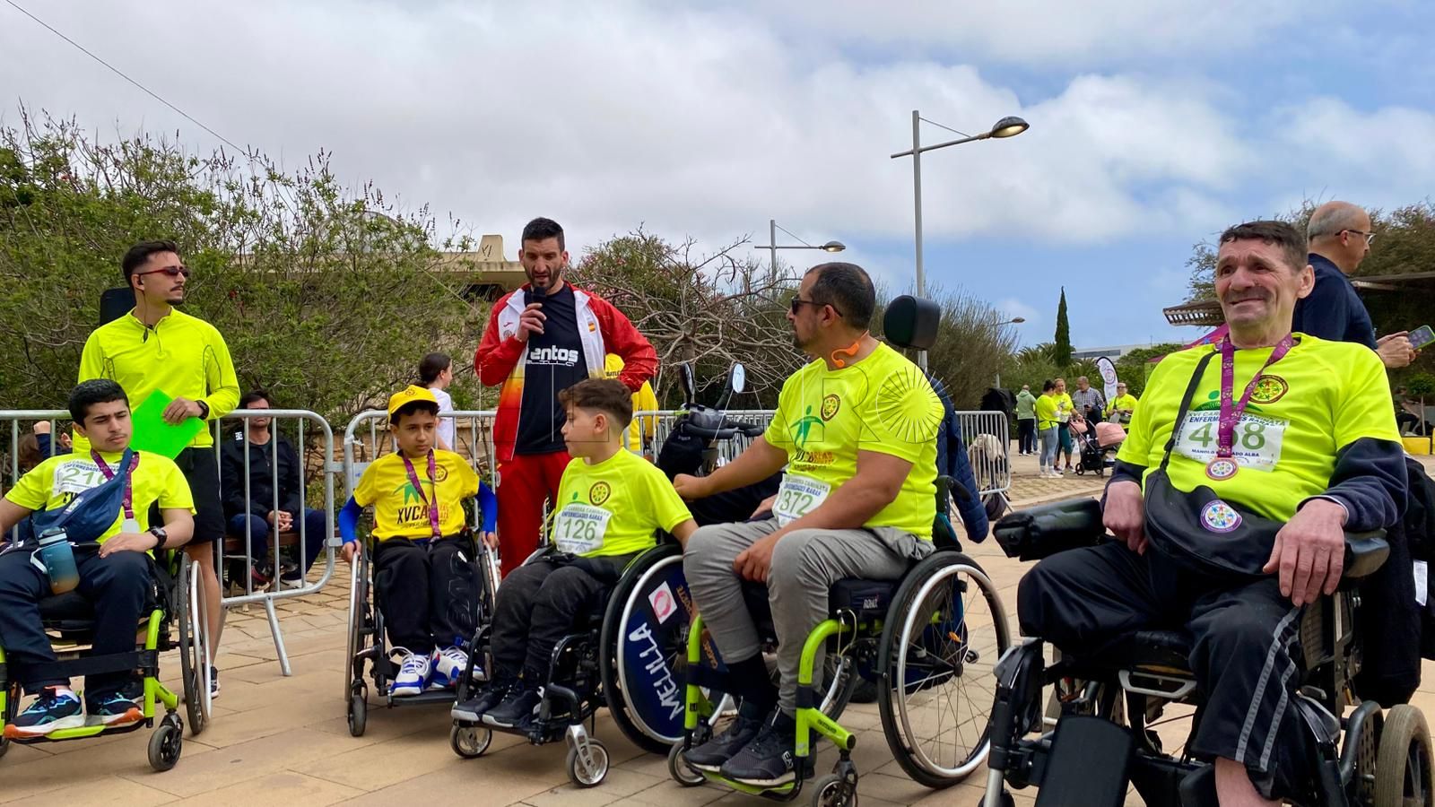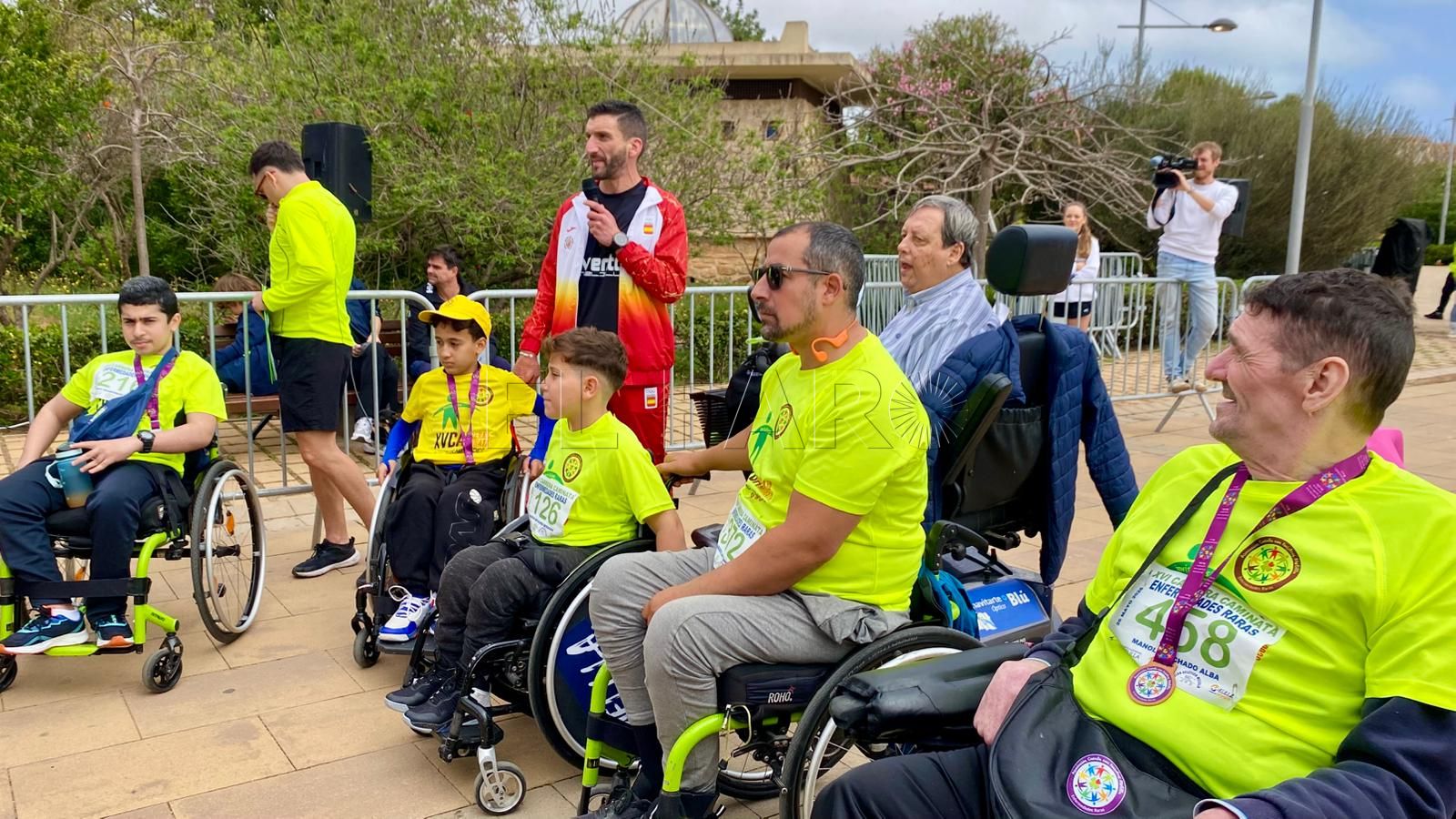 La barra va sujeta por una persona en un extremo que va guiando el camino. “Se sienten muy seguros al estar agarrados”. El objetivo de la Federación es adquirir este material, tanto sillas como barras, para que todo el que quiera pueda sumarse a cualquier competición. Es un gran paso a favor de la inclusión social. “Al final, pues ya veréis las caras de los muchachos y de los chavales que se lo pasan pipa”, aseguraba.