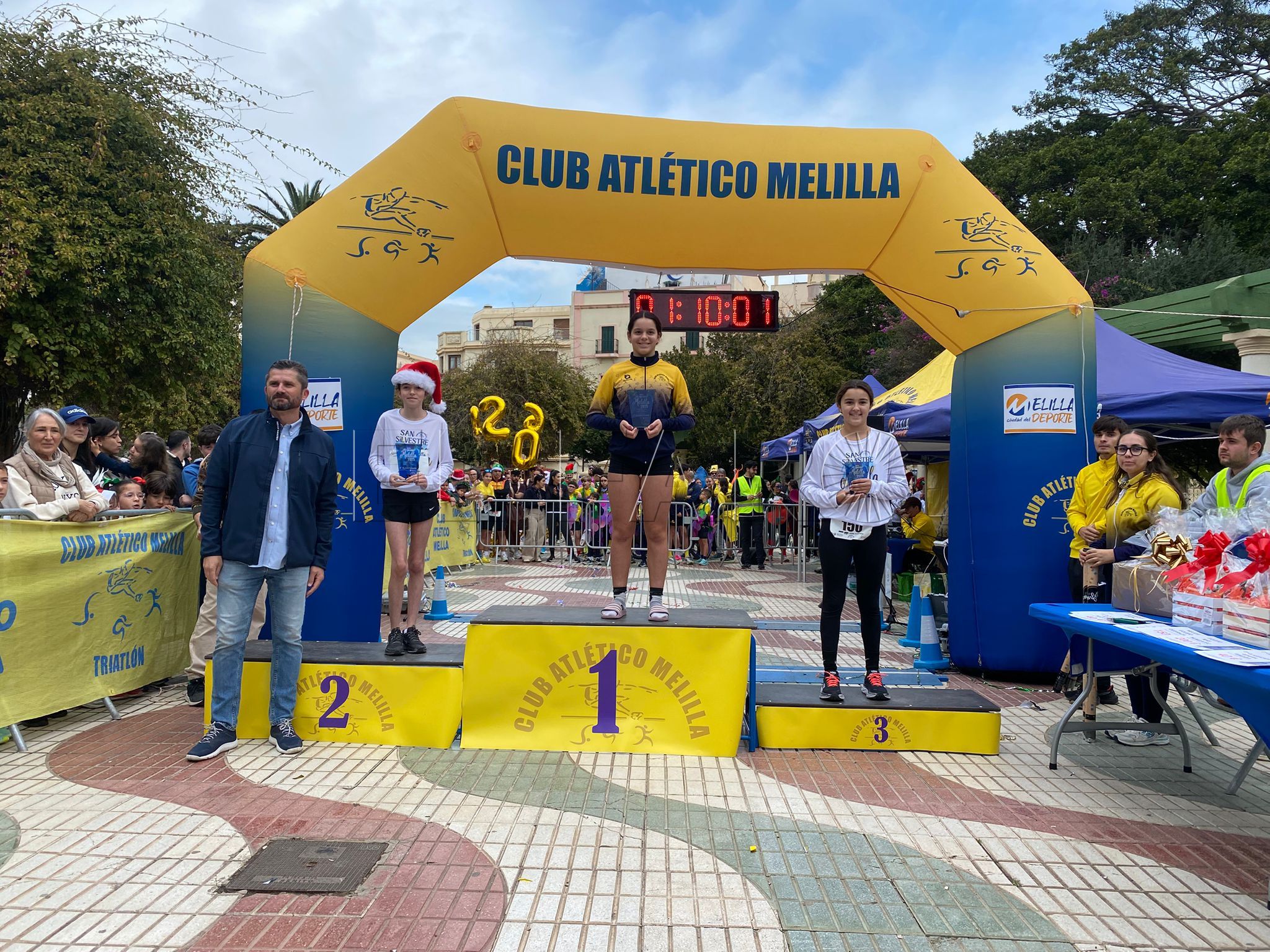 La tercera posición correspondió a Alvaro Martinez Garcia con 17.38. En cuando a la categoría femenina, la misma fue dominada por Lucía Faus del Playa de Melilla segunda por Hany Hadi y por Laila El Amriui. A la finalización de cada una de las pruebas deportivas se procedió a la entrega de trofeos a los tres primeros clasificados de cada una de las categorías que entraron en liza y a los mejores disfraces a nivel individual y por grupos durante esta jornada festiva.