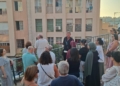 Ese mismo día, al caer la tarde, llegó el turno del proyecto ‘Explora’ en el Monte María Cristina organizado por la Consejería de Cultura. Durante el camino, Oña les mostró a las 50 personas que lo acompañaban la historia del barrio y del fuerte, recordando cómo durante la Segunda República “le arrancaron la corona” al escudo monárquico de la puerta.