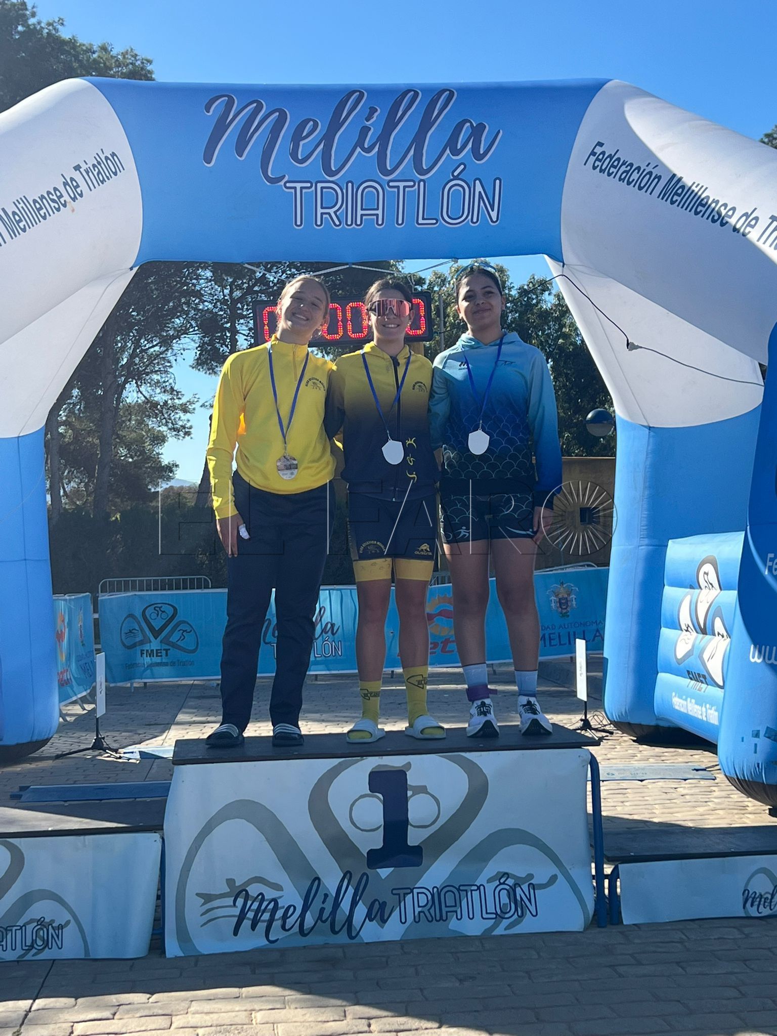 En la categoría absoluta femenina, el dominio fue del Club Triatlón Melilla, con Lucía Faus Almecija como campeona gracias a un tiempo de 46:20, seguida por Blanca Gisbert Alarcón (47:53) y Elsa Martínez Almecija (50:53).