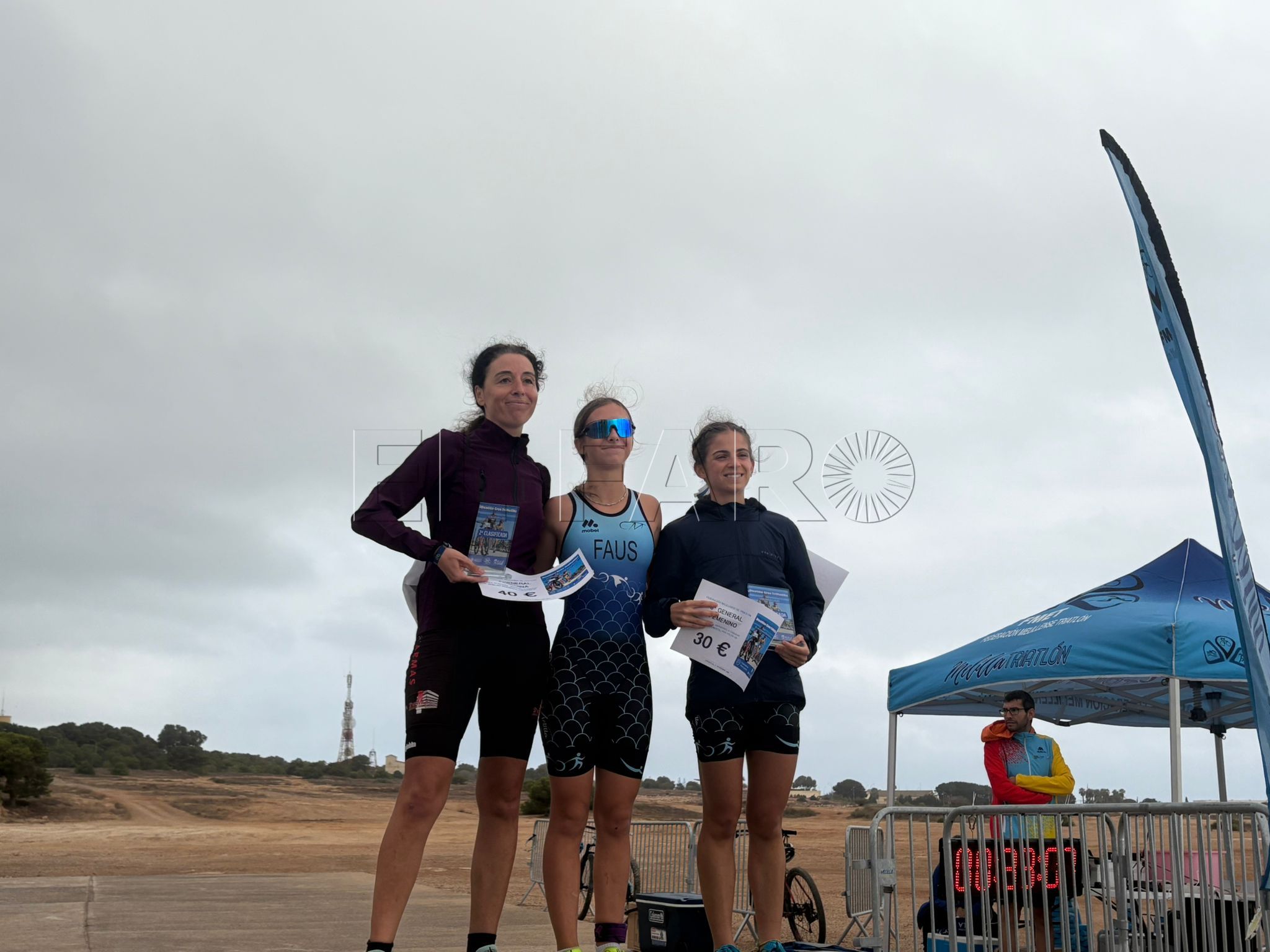 Le acompañaron en el podio sus compañeros Alonso Romero Sanz, segundo con 00:43:32, y Cristian González Romero, tercero con 00:43:53, completando así un pleno melillense en las tres primeras posiciones. En la categoría Absoluta Femenina, la victoria fue para Lucía Faus Almecija (Club Triatlón Melilla), que se impuso con autoridad tras firmar un tiempo de 00:52:25. El podio femenino lo completaron Marta Vidal Benito, segunda con 00:52:53, y Paula Jiménez Vega (Club Triatlón Melilla), tercera con 00:52:58, en una de las clasificaciones más reñidas de la jornada.