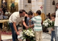 La Hermandad de la Divina Pastora también presentó sus ofrendas con Darío y Julio, reafirmando la importancia de su presencia en la vida de la ciudad. La Congregación de la Virgen de la Victoria, como anfitriona, tuvo una participación destacada: Aitana Jiménez leyó la monición de entrada y, junto a ella, Javier, Óliver e Irene ofrecieron flores a la Patrona. Esta última, además, colaboró también con la Cofradía Castrense en la lectura de la Acción de Gracias, demostrando la unión que existe entre los jóvenes cofrades.