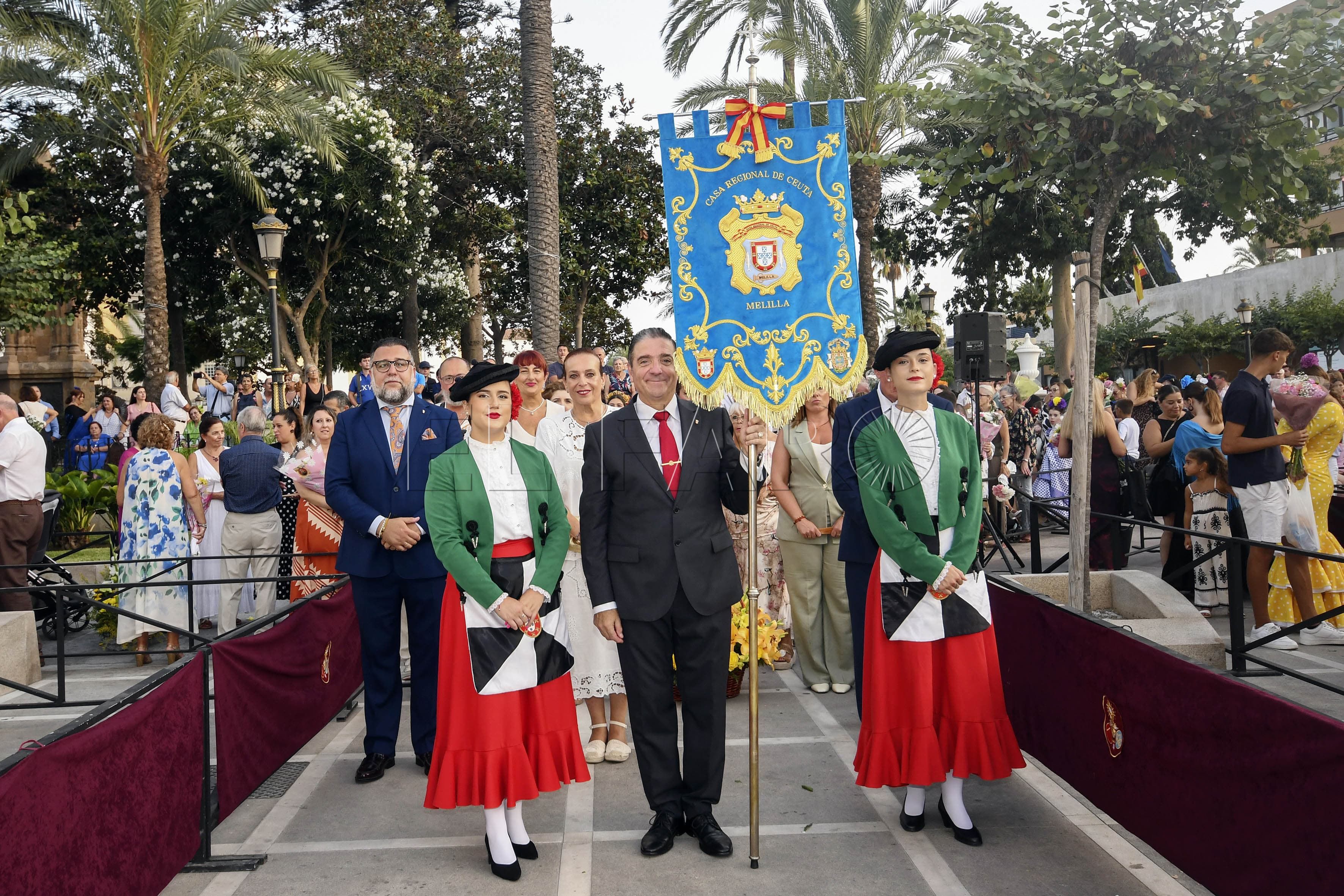 La institución ceutí en Melilla estuvo representada en este acto cargado de sentimientos por su presidente, Ramón de la Cruz, acompañado por el vicepresidente Ramón de la Cruz, la secretaria Noelia Millán, la vocal de Cultura, Cristina Elena Domínguez, y la vocal de Festejos, Cormín Barbero, además de numerosos socios y socias.