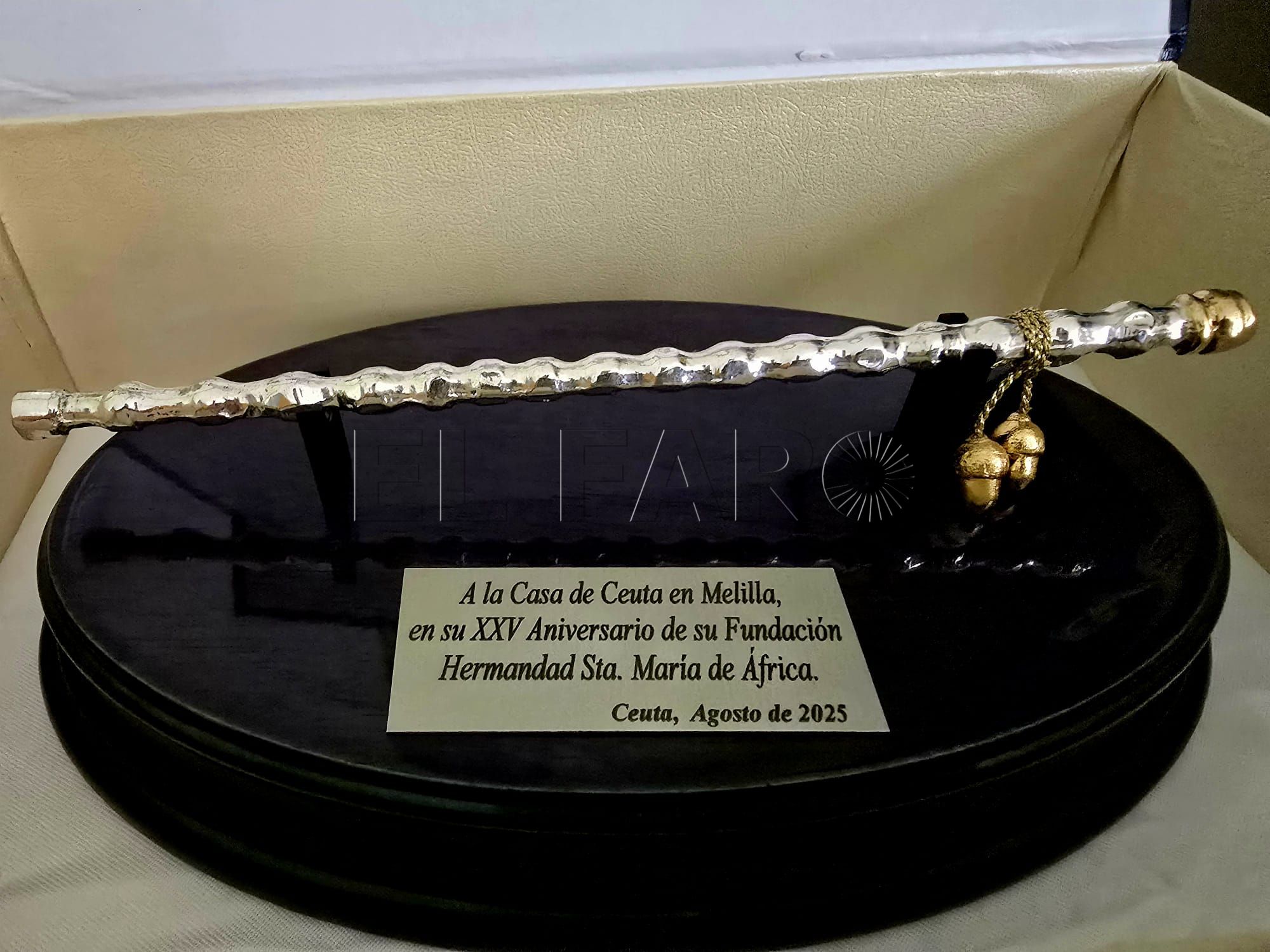 La Hermana Mayor de la Patrona de Ceuta entregó al Presidente de la Casa de Ceuta en Melilla una réplica del aleo que lleva la Virgen de África para que forme parte de la Casa y quede expuesto en las vitrinas de la sede social de la entidad.
