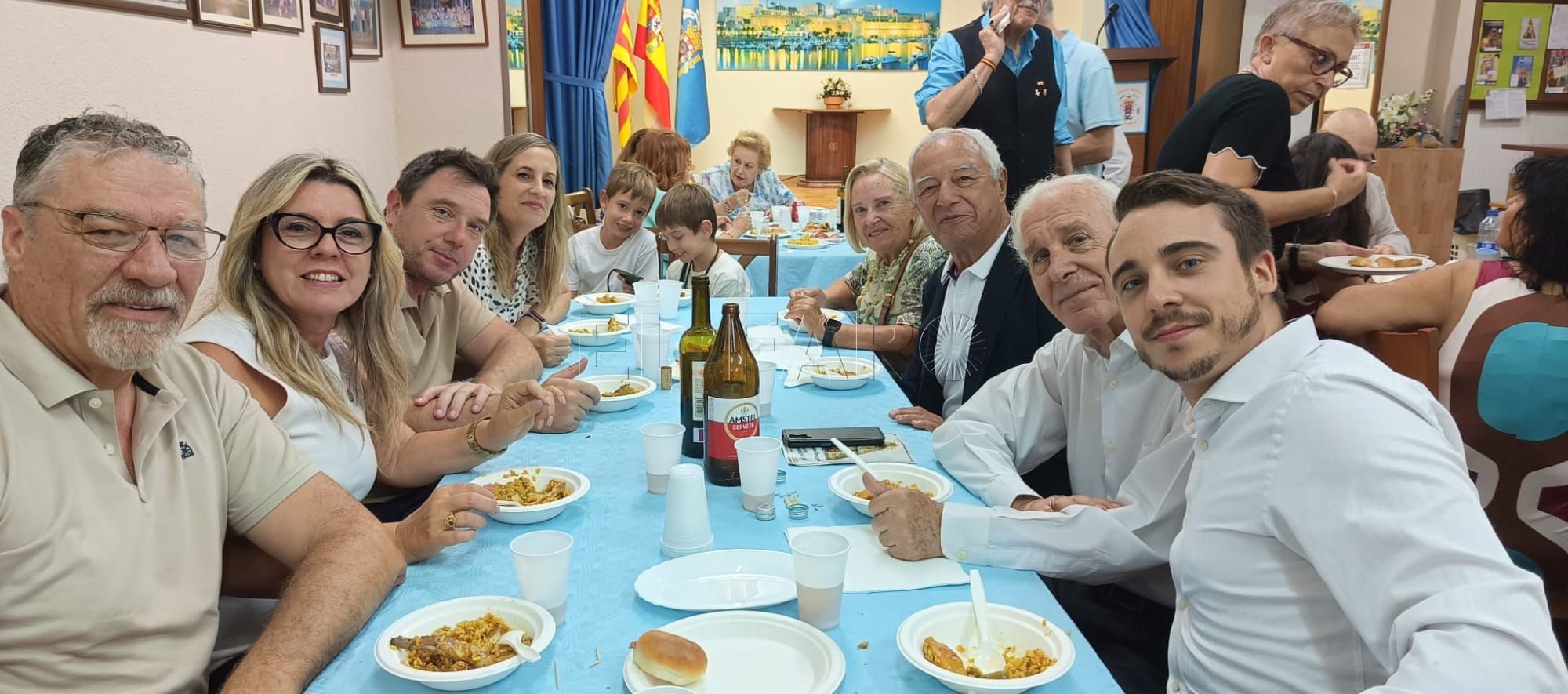 Los invitados fueron entonces agasajados a continuación con una copa de vino y un picoteo. Una previa a la paella valenciana, preparada por el propio presidente de la entidad quien, modestia aparte, es todo un experto en esta receta.