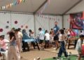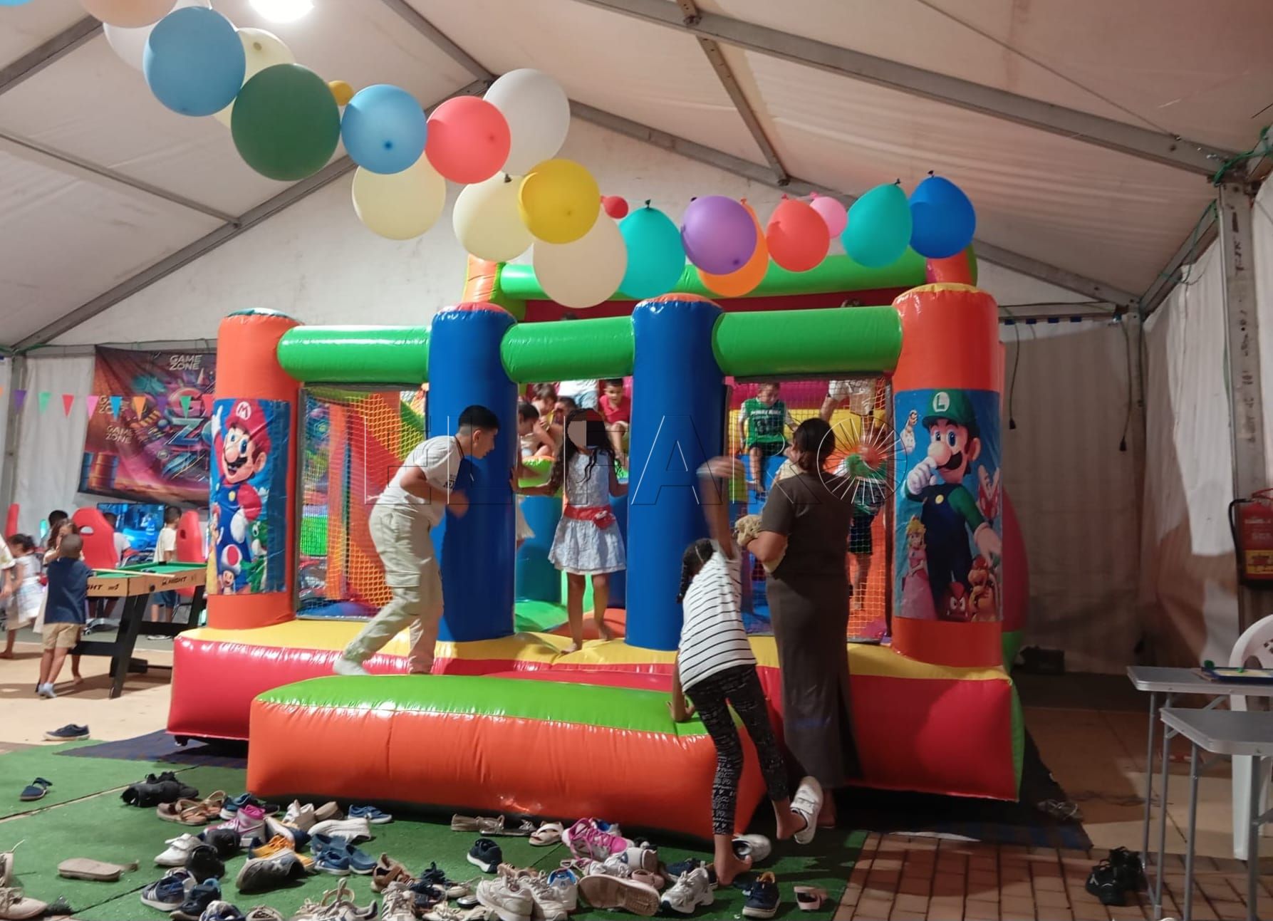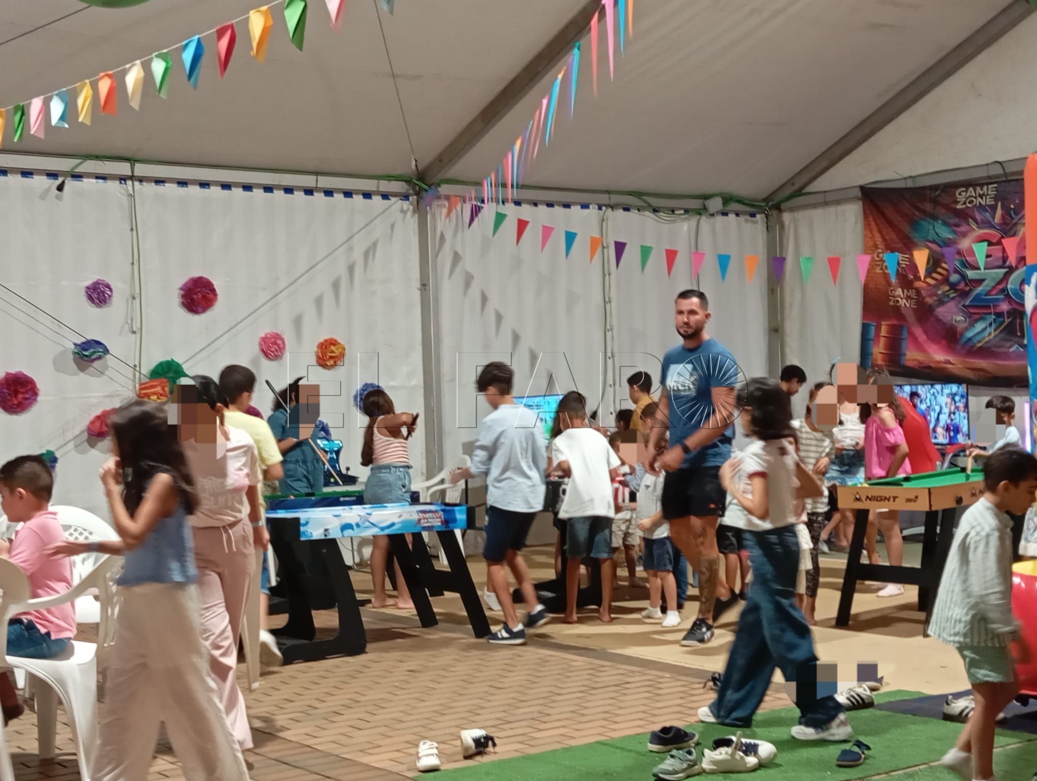 No hay que olvidarse de las múltiples actividades que se ofrecen en esta caseta, como talleres de manualidades o actuaciones en directo, como la del payaso Sarapín que el pasado martes causó sensación entre este joven público, con una asistencia que desbordó la carpa.