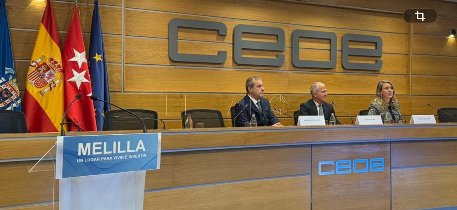 El foro, que se celebró en la sede de la CEOE en Madrid bajo el título 'Melilla: un lugar para vivir e invertir, una puerta al comercio exterior', persiguió difundir los factores de atracción que ofrece Melilla como ciudad estratégica: beneficios fiscales, proximidad geográfica al Magreb, apertura comercial, tejido empresarial emergente, y oportunidades de inversión en diversos sectores.