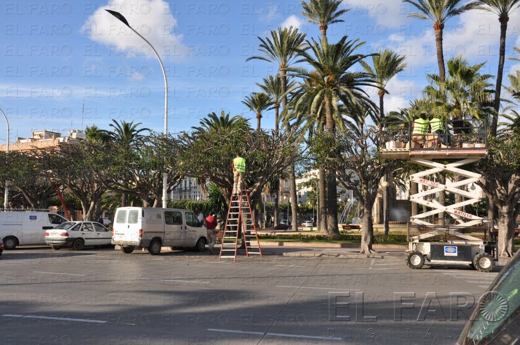 El contrato obliga a la empresa adjudicataria a montar y desmontar exornos y líneas eléctricas de iluminación extroardinaria, en un período total, desde el inicio del montaje de la instalación hasta su desmontaje, de tres meses. Ayer, los melillenses ya pudieron observar el inicio de la instalación de adornos lumínicos.