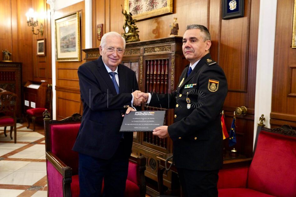 Sanz Cejudo le entregó una placa al presidente de la ciudad con motivo de reconocimiento de la Policía Nacional a Melilla.