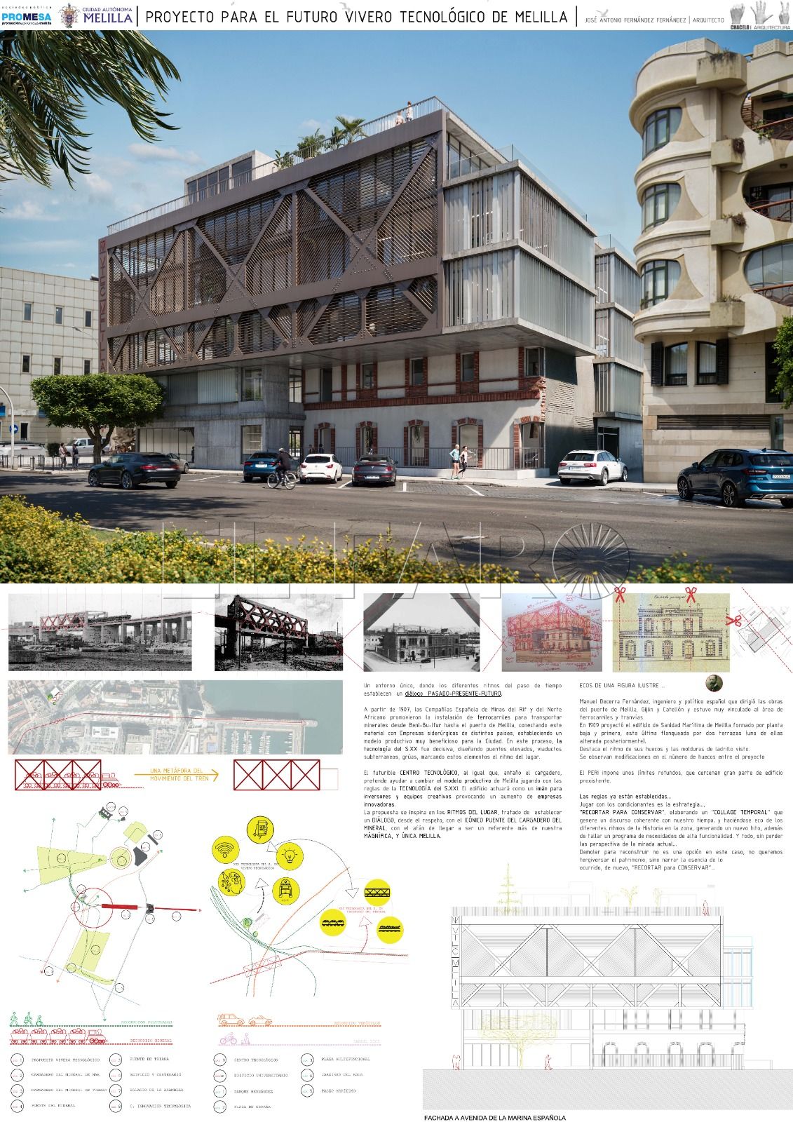 El arquitecto José Antonio Fernández explicó que el proyecto ha sido fruto de un "amplio trabajo multidisciplinar". Señaló que el objetivo es crear “un espacio de posibilidades para las empresas”, con una clara vocación de futuro. Durante su exposición, destacó que el diseño busca integrar la esencia de Melilla. Mencionó elementos como la fachada marítima, la araucaria y, especialmente, el guiño al Cargadero del Mineral. Según indicó, esta referencia pretende establecer un "paralelismo entre el pasado industrial de la ciudad y un nuevo paradigma tecnológico".