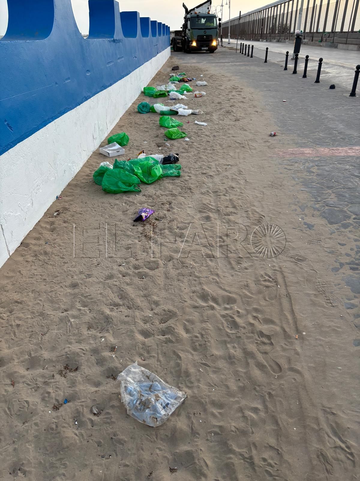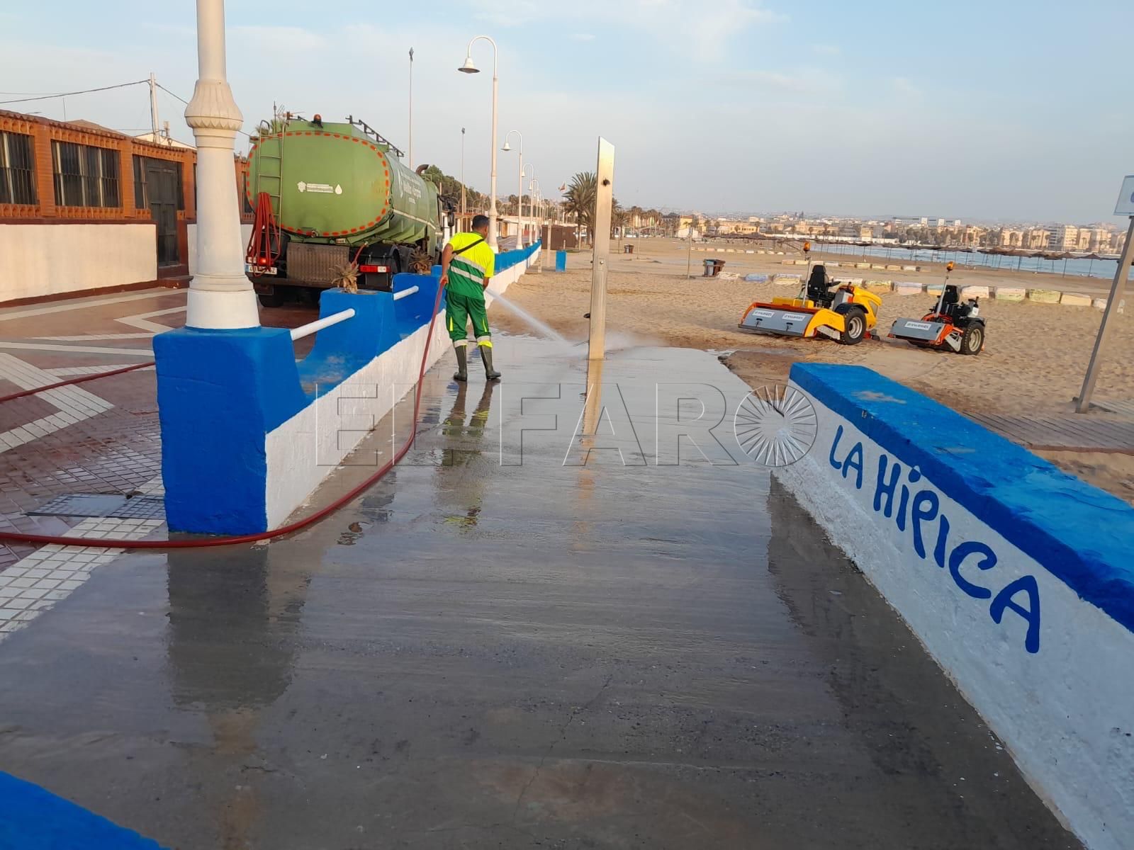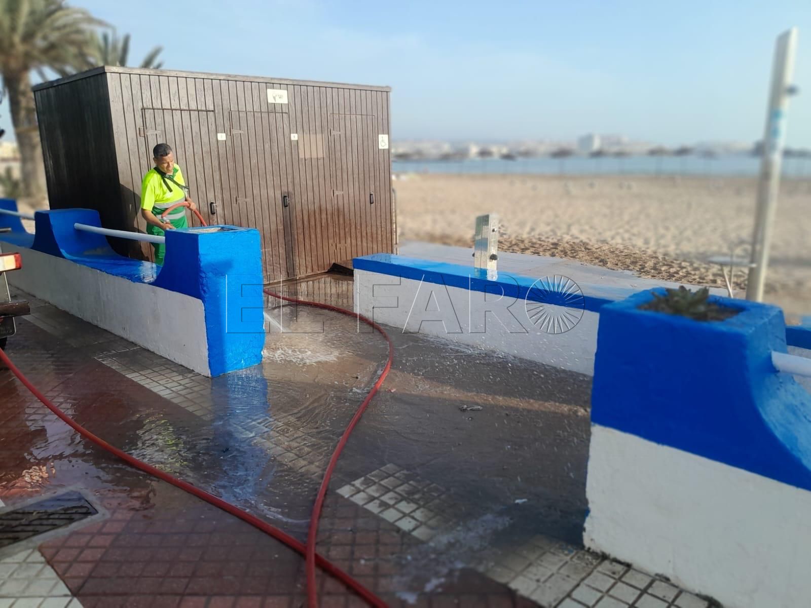 Además, un camión ha regado la acera del Paseo Marítimo, lo que ha permitido que los usuarios de las playas hayan disfrutado por la mañana con normalidad de todos los servicios.